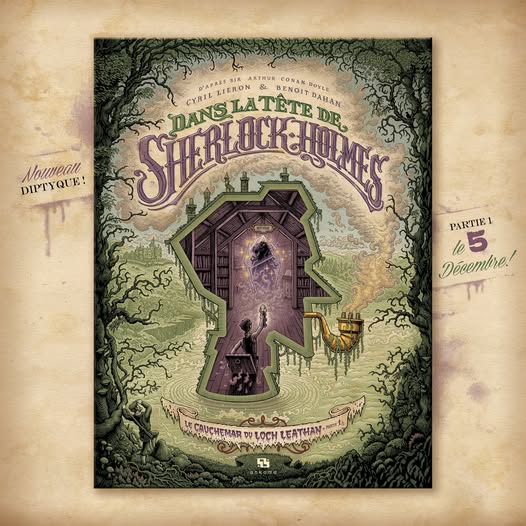 >> 🔎🎩📣 Voici la COUVERTURE du nouveau tome de “Dans la Tête de Sherlock Holmes” ! 😀 Le 5 Décembre en librairies (Ankama Editions 📚) ! 😉⏳🔎 1ère partie d’un nouveau diptyque, « LE CAUCHEMAR DU LOCH LEATHAN », une nouvelle affaire qui se déroule en Écosse. ☠️👻🏰🌳🌲🦇🏴 Un album portant le label Fabrication Humaine , réalisé entièrement sans aucune I.A.