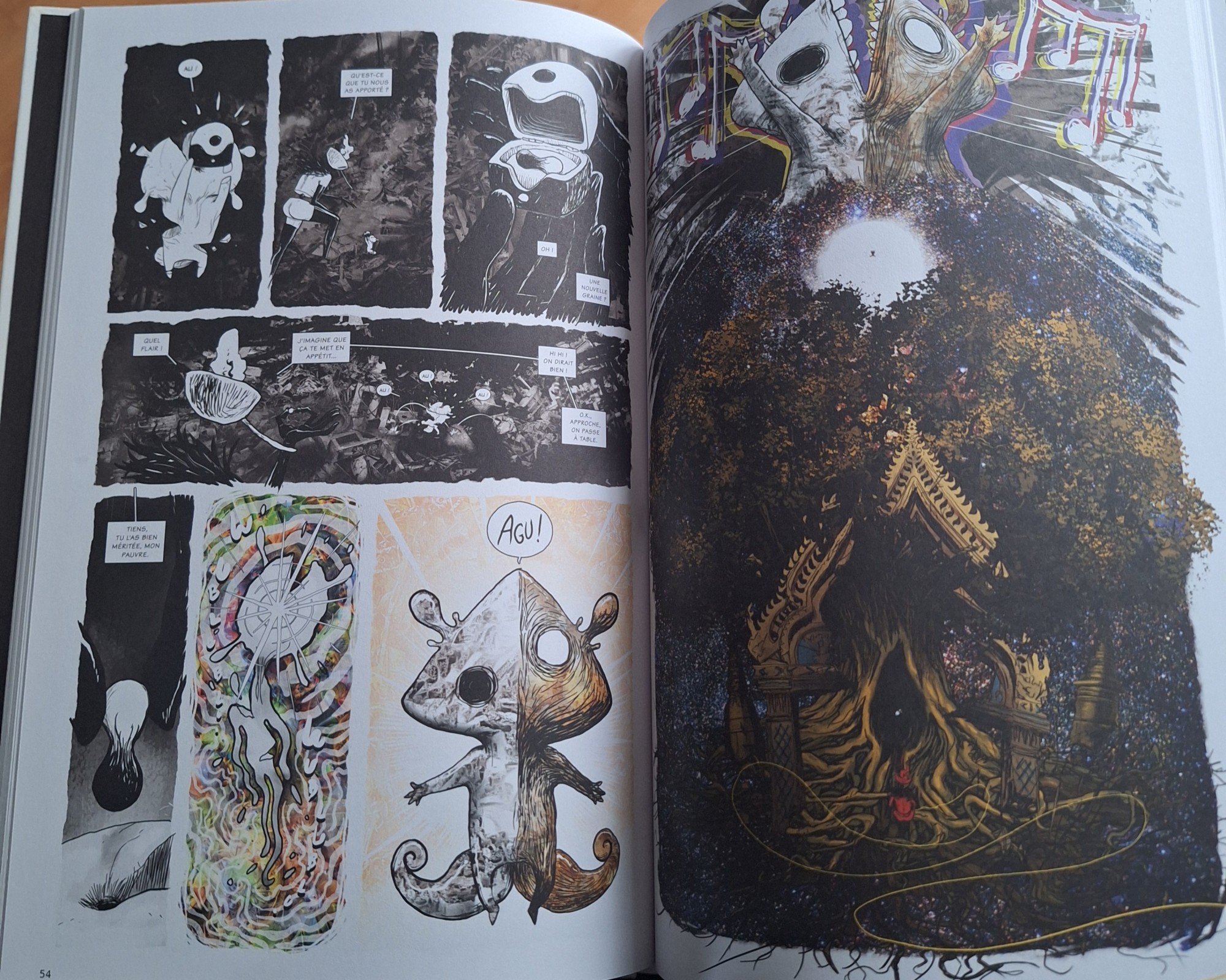 Salut Brodeck, Hermétique ? Non. C'est une expérience narrative avant tout et d'ailleurs je ne suis pas certain d'avoir tout compris, mais faut-il tout comprendre pour apprécier une lecture ? C'est une expérience qui vaut la peine d'être essayée. Par contre je ne peux garantir que cela te plaise. Visuellement Cour fait étalage de son talent et arrive à rendre crédible ce monde virtuel. Et ça c'est déjà un tour de force. >> Brodeck avait écrit : >> Hello Cacal69, >> >> J'avais cru lire quelque part que graphiquement, c'était super, mais que le scénario était trop hermétique. Ce n'est pas le cas alors ? >> >> >> Cacal69 avait écrit : >> >> J'ouvre cette page sur Édouard Cour suite à la cascade de 5/5 pour Soli Deo Gloria. Ça n'arrive pas si souvent, la dernière fois c'était Monstres. >> >> Pour ceux qui ont adoré son dessin sur Soli Deo Gloria, je ne peux que vous pousser à vous pencher sur ReV où son talent éclabousse tout l'album (voir fichier joint). >> >> Pour Blue boy et son superbe avis sur Soli Deo Gloria, je tiens à préciser qu'une série n'est pas répertoriée sur bdtheque, ça fait 6 et non 5 🤪 >> >>https://www.bdfugue.com/super-deltas-tome-1-l-appel