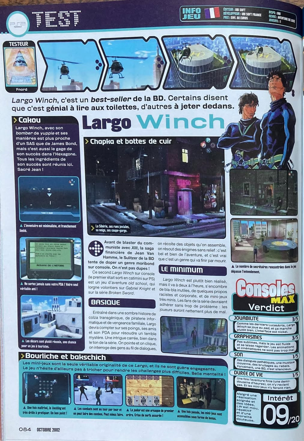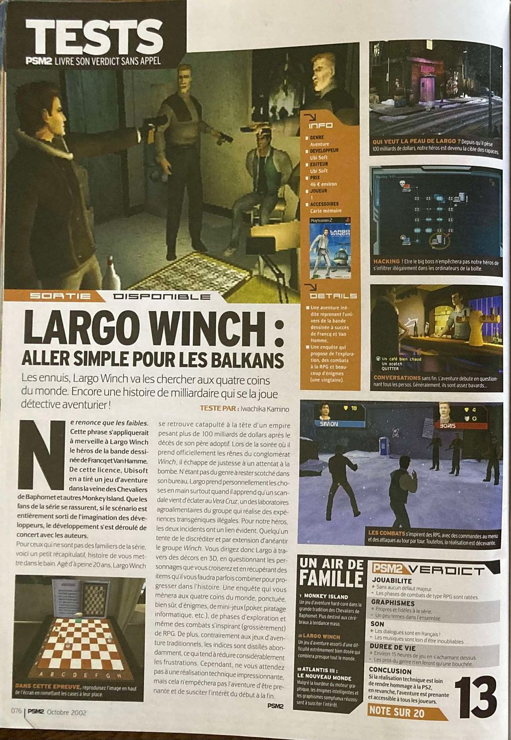 Ubisoft France publia en Septembre 2002 deux adaptations du blockbuster « Largo Winch » : un épisode complètement raté sur une PS1 vieillissante (« Commando Sar ») et un épisode beaucoup plus prometteur sur PC et consoles de nouvelle génération : « Largo Winch : Aller simple pour les Balkans ».