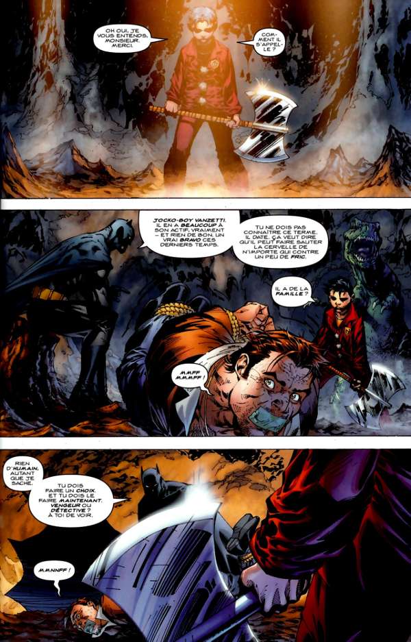 Mise à jour du 11/02/2011: Je reviens sur mon avis puisque je viens d'apprendre que Jim Lee a contacté Mr Miller pour lui annoncer qu'il était à nouveau disponible pour finir "Batman and Robin: The Boy wonder". Pour la petite histoire : Cette série débute en juillet 2005 et sera stoppée en août 2008 après la parution du #10 ! 10 épisodes en 3 ans... Jim Lee a un agenda surchargé et ne souhaite pas bâcler son travail, du coup la série évolue très lentement. Puis Frank Miller annonce à Jim qu'il vaut mieux arrêter... Pour reprendre du bon pied lorsque l'emploi du temps de Mr Lee le permettra. Donc DC annonce fièrement en 2010 que Jim Lee et Frank Miller finiront leur série à partir de février 2011 : des croquis sont déjà disponibles. Donc les 6 épisodes manquants devraient paraître mensuellement à partir de février. A noter que les 9 premiers épisodes forment un « tout » et le 10ème annonce une nouvelle partie qui se termine donc cette année. Les 10 premiers épisodes sont parus de la manière suivante en France : All Star Batman 1 et 2 Superman Batman H.S. 3, 4 et 6. Ce «run » fait partie de l’univers créé dans « The dark knight returns », « Batman year one », « Strikes Again » et « Spawn/Batman ». Avant d’aller plus loin, je tiens à préciser qu’il y a « deux » Batman : 1/ le super héros façon Adam West. 2/ L’être humain torturé par la mort de ses parents et qui se sent vivre uniquement s’il lutte contre le crime. J’ai un penchant pour le 2 mais je comprends parfaitement que cela ne plaise pas à tout le monde. Sachez que l’œuvre de Lee et Miller est à classer dans la deuxième catégorie… Même que certains passages de « All Star Batman » feraient passer « The dark knight returns » pour un conte de fée… Oui ! j’exagère ! Mais quand même... Donc, on retrouve un Batman sombre, torturé et politiquement incorrect par moment. Les deux premiers épisodes sont une relecture de la mort des parents de Dick Grayson, le « futur premier Robin ». Dans la chronologie « Batman par Miller » on se situe donc entre « Batman year one » et « The dark knight returns » . On retrouve ici un Batman plein de vie et très sûr du rôle qu’il a à jouer au sein de Gotham City (contrairement à l’œuvre de 1986 où Batman remet son rôle en question). Cela dit, l’intérêt de cette série se situe dans la relation entre Batman et Robin. Batman applique une méthode d’éducation très… comment dire… sauvage et violente ! Robin est malmené par son « père adoptif » et cela dans l’unique but de le tester : Dick Grayson est un sportif de génie mais a-t-il le mental ? Batman lui amène sur un plateau le meurtrier de ses parents et lui annonce la couleur : « Détective… ou meurtrier ? A toi de choisir ! » Au fur et à mesure que Batman éduque sa « relève », il se rend compte de ses erreurs de mentor… Et c’est là où se situe l’un des points forts de l’histoire : on a sous nos yeux Batman qui mûrit. En observant Dick qui évolue et enchaîne bavure sur bavure, Batman n’a pas le choix et doit ré-affronter également son passé… Et c’est tout simplement magistral ! La puissance dramatique de ce run est exceptionnelle. Et les trois dernières pages de l’épisode 9 laissent sans voix (Encore faut-il se sentir concerner par la mort des parents des personnages). D’ailleurs il s’agit du meilleur épisode… jusqu’à présent ! Le dessin est parfait : cadrage, angle de vue, couleur (à coup de grand renfort Photoshop !) et mise en page sont à couper le souffle ! Quant aux dialogues, c’est jouissif et drôle ! Quand on apprécie le style bien sûr ! Je finirai sur l’apparition du Joker qui est aussi brève qu’intense ! Inoubliable ! Si on ne l’aperçoit que pendant quelques cases au cours de ces 10 premiers épisodes, il aura le premier rôle dans les 6 derniers. Pour l’anecdote, Jim Lee trouvait génial de mettre un tatouage dans le dos du Joker… Et afin de respecter au millimètre ce personnage, Lee a cherché si le Joker a pris une balle dans le dos dans le passé… afin de la reproduire sur ses dessins. Je peux vous assurer que le Joker n’a jamais eu autant de charisme dans un comics ! Je ne me suis pas arrêté sur tous les points forts de cette série : il y en a trop… à vous de les découvrir ! Aux Etats-Unis, cette série a divisé les fans et les critiques en plusieurs groupes : le premier qui a crié au génie en lisant ce comics par Miller et Lee et je fais partie de ceux là, le deuxième groupe qui a vu une occasion pour Miller de se moquer des super-héros tel que Green Lantern ou pire, se moquer des scénaristes responsables des séries impliquant Superman par exemple. Le troisième groupe crie au scandale en voyant des dialogues et un scénario bien trop sombres pour Batman, ils diront « Nous assistons à un nouvel épisode de Sin City incluant Batman » « Le talent de Lee est gâché par un scénariste au plus bas de sa forme ! » Pour ma part, je dirais : « Je n'ai aucune envie que les auteurs nous servent du "Dark knight bis" ou "Un long Halloween bis", je veux du neuf, de la créativité, de l'originalité, des oeuvres qui me fassent rire, pleurer, réfléchir. Et ce "Batman and Robin: The boy wonder" a comblé tous ces points. Alors merci messieurs Lee et Miller et la suite bordel, on a faim !"