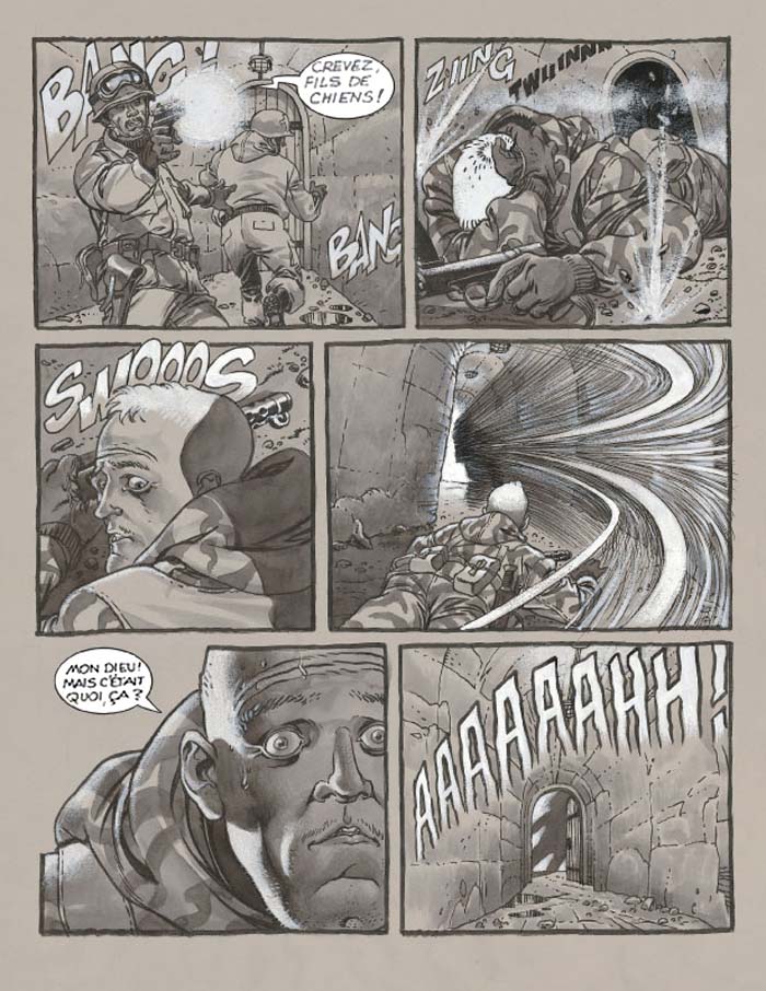 Très étonnant sur le plan graphique : le dessin change énormément d'une histoire à l'autre, à tel point qu'on a du mal à croire qu'il s'agit du même dessinateur ! Toutes ces histoires sont à caractère fortement fantastique, et comme le titre l'indique, en lien direct avec la guerre. La lecture de cet album est plaisante. En fait, j'avais l'impression de retrouver une ambiance voisine des contes de la crypte. :) Pas exceptionnel, mais franchement sympathique.