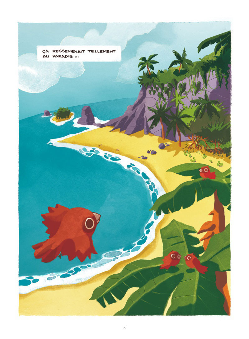 Un récit que j’ai trouvé agréable à lire dans sa forme mais très convenu sur le fond. Tout est dit dans le titre ou presque. Paola échoue sur une île déserte en compagnie de son père et de son frère tandis que sa petite sœur est introuvable, voilà le point de départ. La suite du récit nous conte l’acclimatation de cette petite famille à son nouvel espace de vie. Le tout se passe dans la bonne humeur (en règle générale). Au fil du récit, on découvre également la mère de Paola, restée sur le continent mais ne pouvant se résoudre à la disparition de sa famille. C’est frais, sympathique, vivant. Pas de second degré mais beaucoup de douceur. Une douceur encore accentuée par un graphisme informatisé très « dans l’air du temps », tant au niveau du trait que des couleurs. Boarf… Au même âge que celui du public visé par le présent album, je suivais avec plaisir « les Robinson suisses » à la télévision tandis que « l’Ile mystérieuse » de Jules Verne demeure un de mes romans préférés. Je comprends donc parfaitement la fascination que peut produire ce genre de thématique sur un jeune public (comme sur un moins jeune, d’ailleurs). Pas révolutionnaire mais plaisant à lire.