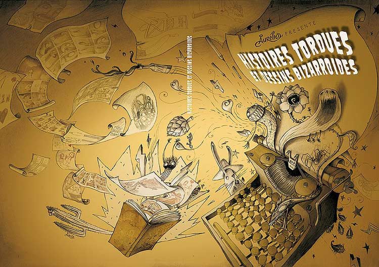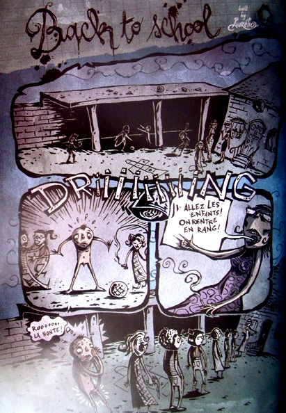 Amateurs d'art graphique tranché, cet album est fait pour vous ! C'est suite à la rencontre de l'auteur à Angoulême cette année que j'ai découvert son travail. Les stands des indé' fourmillent toujours de belles pépites ! Également tatoueur, le style d'Aurélio est très marqué graphiquement. Pour moi, l'univers qu'il décline à travers ses courtes histoires et ses illustrations me font penser à un heureux mélange entre Tim Burton, Guillaume Bianco dans Billy Brouillard et Run (pour le côté tatoo Hispano de Mutafukaz). Son trait est saillant, d'un dynamisme impressionnant, et les planches qu'il produit explosent ! Fi des cadres figés ! Il joue avec les pages qui deviennent de "simples" cases où il s'exprime pleinement. Il alterne aussi bien le noir et blanc, le sépia que les couleurs pétantes, mais toujours de façon intelligente pour servir son propos. C'est juste de ce côté que je mettrai un léger bémol. Comme tout recueil, certaines histoires sont un peu en dessous et pêchent par leur scénario. A découvrir pour le plus grand plaisir des yeux !
