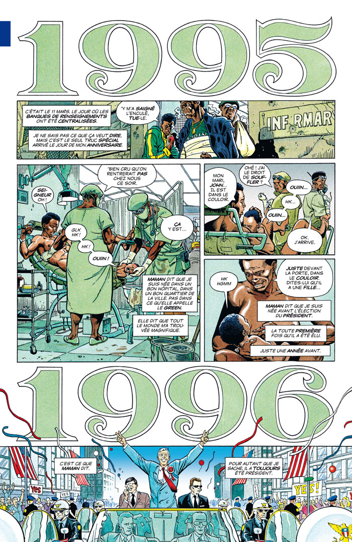 Élu en 1996, le président des États-Unis Erwin Rexall a fait abroger le 22ème amendement de la Constitution (qui interdit à un président d'être élu pour plus de 2 mandats) et se prépare donc, après 12 ans de "règne", à se présenter pour la 4ème fois aux élections. Mais un attentat à la Maison Blanche le plonge dans le coma et il se voit donc remplacé par l'un de ses secrétaires d'état, Howard Nissen. Alors que Rexall incarnait une droite dure, limite facho, Nissen est un écolo plutôt à gauche qui va s'efforcer de réparer les erreurs de son prédécesseur, avec plus ou moins de réussite... C'est dans ce contexte que naît et grandit Martha Washington. Martha vit dans le ghetto de Cabrini Green, une véritable prison pour pauvres où flics et criminels font régner la terreur. À l'âge de 12 ans, elle est amenée à tuer un homme, et internée en hôpital psychiatrique. Elle commet un nouveau meurtre dès sa sortie en s'engage alors dans l'armée, la PAX, qui accorde l'amnistie totale aux volontaires. La première mission de Martha l'emmène dans la jungle amazonienne. Le président Nissen veut empêcher les producteurs de viande de la raser pour y élever du bétail à la place, mais ceux-ci ne l'entendent pas de cette oreille et sont donc entrés en guerre avec les États-Unis pour défendre leur bifteck...