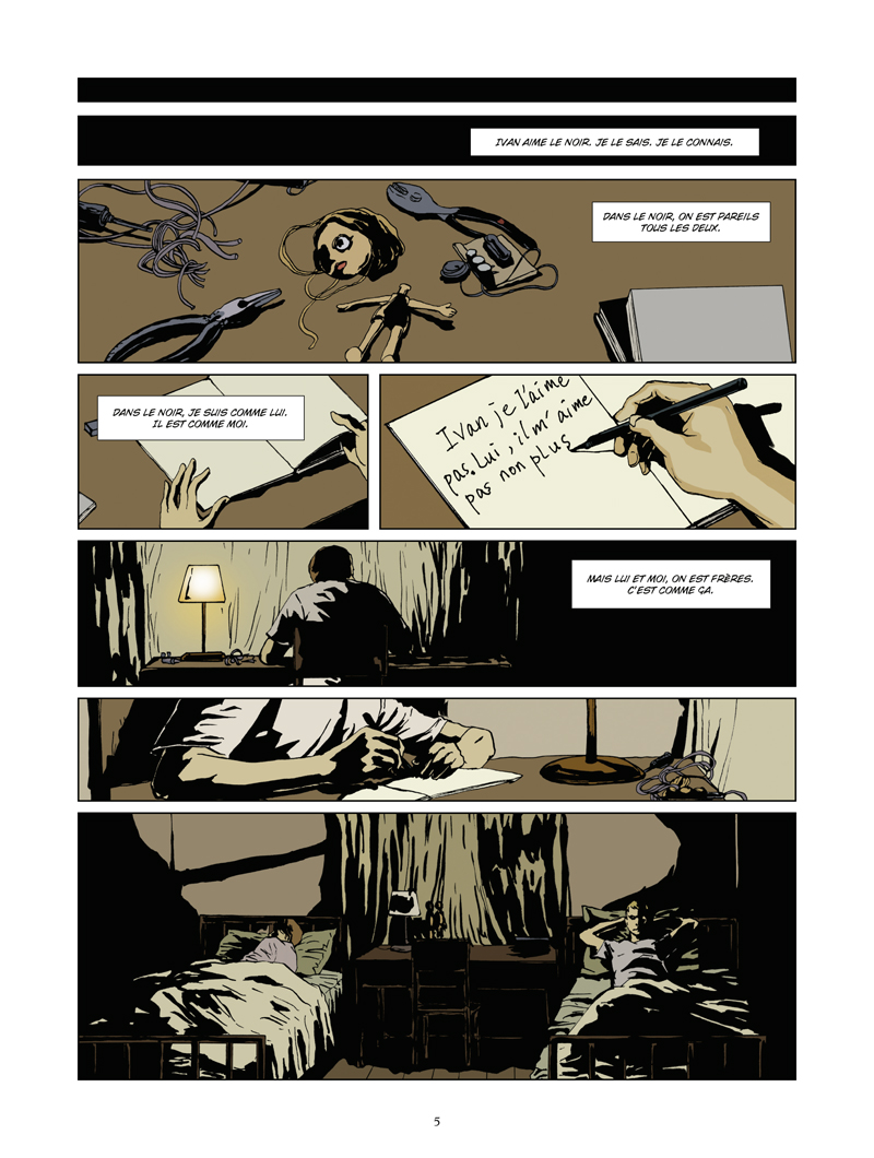 2.5 L'histoire n'est pas dénuée d'intérêt, mais il y a deux choses qui ont fait en sorte que je trouve ce one-shot moyen. Premièrement, j'ai trouvé les deux frères totalement antipathiques et je ne me suis donc pas ému par les malheurs de leurs enfances et j'étais un peu indifférent à ce qui pouvait leur arriver. Deuxièmement, j'ai eu l'impression qu'il ne se passait pas grand chose une fois qu'ils devenaient adultes. Bon, il y a la relation entre un des frères et une femme, mais je m'en fichais un peu. Je n'ai été vraiment captivé que lors du dénouement final où j'ai finalement eu la sensation que quelque chose d'intéressant se passait et cela a sauvé l'album de mon indifférence.