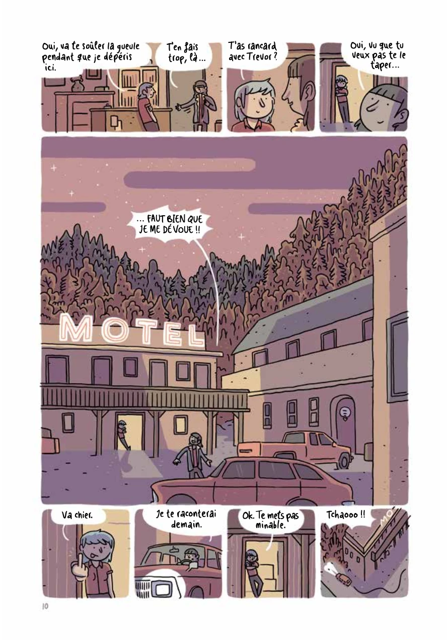 Troisième série d'Álvaro Ortiz que je lis et là encore je salue l'originalité de son scénario. Sur fond d'ambiance de road-movie à l'américaine, il aime à mettre en scène des personnages originaux et des situations étonnantes. Ici, c'est l'histoire d'un jeune homme désœuvré qui rencontre un collectionneur d'objets ayant appartenu à des tueurs en série ou ayant causé des morts spectaculaires. En même temps qu'il s'interroge sur ce personnage, le héros va s'installer dans le motel d'une bourgade paumée et se mettre en couple avec la jeune propriétaire de l’hôtel. L'histoire n'est donc pas mal, un peu surprenante. Le dessin et la narration graphique sont également bons dans leur simplicité et leur efficacité. J'aime aussi le travail sur les couleurs un peu rose et désaturées. Pourtant, je dois dire que le côté morbide de l'intrigue et des idées qu'elle contient ne m'enthousiasme pas. Ce n'est pas ma tasse de thé. Je me suis notamment ennuyé sur les quelques pages inventoriant les objets du collectionneur. De même, je n'ai pas trouvé les protagonistes sympathiques : ce ne sont pas des personnages auxquels je peux m'attacher et qui me donnent envie de suivre leurs histoires. Donc ma lecture fut assez divertissante et m'a fait passer le temps, mais ce n'est pas un album que j'achèterais personnellement.