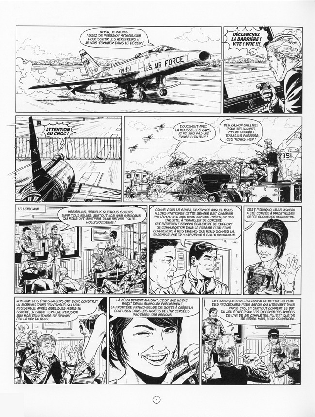 Ce court fascicule de 12 planches en noir et blanc est offert pour l'achat du fourreau promotionnel contenant le troisième album de la série Les Aventures de Buck Danny (classic) et le premier opus d'Une aventure « classic » de Tanguy et Laverdure. Buck Danny et Michel Tanguy sont deux personnages créés par jean-Michel Charlier, le premier pour le magazine Spirou en 1947 et le second pour Pilote en 1959. Le scénariste a déjà imaginé leur rencontre à deux reprise, dans le tome 6 des aventures de Tanguy et Laverdure, Canon bleu ne répond plus en 1964, puis dans le dyptique Les anges bleus / Le pilote au masque de cuir, tomes 36 & 37 de Buck Danny en 1969. Ces deux épisodes, assez brefs, constituent plutôt des clins d'œil que des aventures en commun. Ce ne furent en aucun cas des crossovers au sens moderne du terme. Je pense que la rivalité qui opposait les deux magazines (Spirou & Pilote) ainsi que leurs deux éditeurs (Dupuis & Dargaud) ne permettait pas davantage à l'époque. Pour le lancement de la série « Classic » de Tanguy et Laverdure, les éditions Zéphyr réparent cette frustration en réunissant derechef les deux aviateurs les plus célèbres du neuvième art. L'histoire est très « classique », il faut le reconnaître. Tout y est : les bourdes de Sonny Tuckson et d'Ernest Laverdure, prêts aux pires maladresses pour le premier jupon venu, les méchants espions venus de l'Est qui inventent d'invraisemblables stratagèmes pour discréditer l'US Air Force et l'Armée française, le courage et le talent de pilotes de Buck Danny et de Michel Tanguy qui sauvent la situation in extremis… Bref, c'est vraiment une aventure sans surprise qui s'inscrit parfaitement dans la veine des gros câbles scénaristiques à la Charlier. Mais l'ensemble gagne en qualité pour plusieurs raisons. D'abord, le format en 12 planches densifie l'histoire et empêche longueurs, temps morts et faux suspenses de bas de page habituels chez Charlier. Ensuite, le récit joue le jeu de l'humour, avec l'intervention du cousin de Laverdure, gendarme tout droit échappé de Saint-Tropez (c'est le même acteur, Christian Marin, qui jouait les deux rôles), tout comme un certaine bonne sœur en 2 CV… Et enfin, le dessin de Sébastien Philippe est excellent. Je trouve d'ailleurs que le format en noir et blanc le met particulièrement en valeur. C'est donc un joli supplément qui mériterait d'être ultérieurement publié dans un vrai album. Pourquoi ne pas l'accompagner de quelques récits dans la même veine ? Ce n'est pas de la BD moderne, j'en conviens, mais personnellement, je suis preneur.