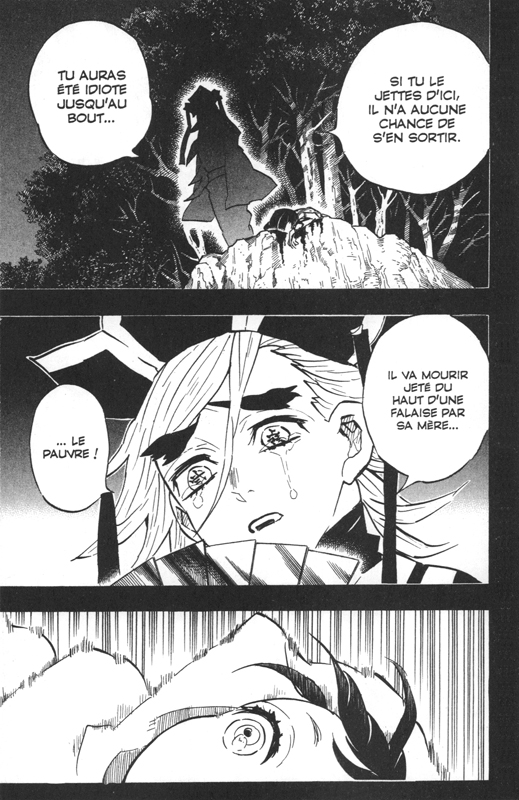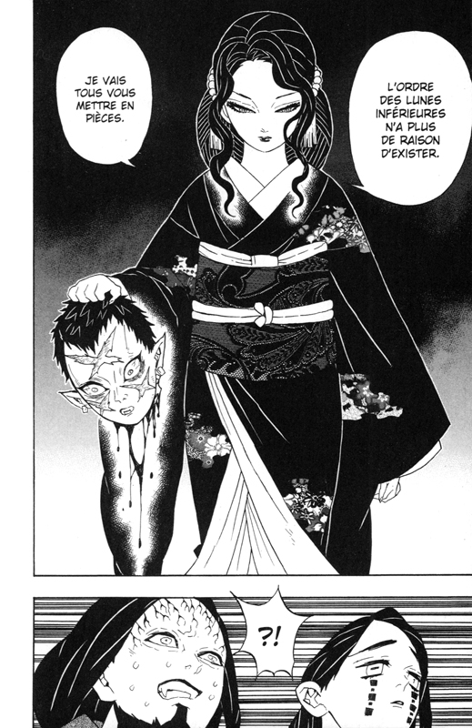 Poussé par mon fils qui adorait la série animée, j'ai acheté les premiers tomes du manga il y a bien deux ans je crois mais après les avoir lus et les avoir trouvés simplement sympas, je n'avais pas eu la motivation d'acheter ni de lire la suite. Ce n'est que maintenant, bien plus tard, que je viens de lire l'intégrale de la série pour enfin m'en faire un avis complet... et... j'ai une drôle d'impression en demi-teinte. Il y a beaucoup de bonnes choses. Pour commencer, il y a une certaine originalité de ton, entre l'aventure façon nekketsu (le jeune héros plein de bravoure qui va se donner à fond pour grimper les échelons, affronter les épreuves et chercher sans relâche à atteindre son but, entouré d'amis fidèles qui lui apporteront leur soutien), la tragédie romantique, et ici et là une part d'humour léger qui contraste étrangement avec le sordide et le gore de certaines scènes. Nous avons en effet d'une part un héros qui porte sa petite soeur comme un éternel fardeau et combat les terribles monstres qui l'ont transformée en démon, tandis que ceux-ci dévorent, asservissent, déforment et anéantissent des humains comme de simples proies animales. Et d'autre part, nous avons des compagnons du héros un peu foufous, entre un Inosuke survolté avec sa tête de sanglier débile sur la tête, un Zenitsu à la fois agaçant de lâcheté et raide dingue de la soeur du héros, et même certains piliers pourfendeurs de démons qu'il est difficile de prendre au sérieux, comme le pilier de l'amour, et même certains démons eux-mêmes. Cet étrange cocktail permet de nettement mieux assimiler l'horreur de certaines situations. On notera d'ailleurs que la majorité des protagonistes sont jeunes, beaucoup sont mêmes des pré-adolescents alors qu'ils combattent les pires dangers. Cela joue à nouveau dans la réussite à alléger une histoire qui autrement serait vraiment trop noire si on ne gardait que ses aspects cruels et réalistes. Ensuite, il y a l'originalité dans les spécificités de tous ces démons. J'avoue que c'est ça qui m'a tenu en haleine, bien plus que les ennuyeuses attaques des gentils, "souffle de machin, ixième mouvement". Chaque démon a des caractéristiques physiques, intellectuelles et des pouvoirs très différents qui les amènent chacun différemment à s'en prendre aux humains sous des formes parfois très brutales, parfois bien plus psychologiques ou dérangeantes. Et d'ailleurs sur ce plan, j'ai trouvé certaines des "lunes supérieures" bien plus intéressantes que leur maître démon, Muzan. Quant au graphisme, il est bien, clair à la lecture malgré des combats parfois embrouillés, et suffisamment doué pour bien distinguer chaque personnage. Je n'ai pas grand chose de plus à en dire. Du coup, pourquoi n'ai-je pas ressenti à la lecture de ce manga la même envie dévorante de lire la suite que pour nombre d'autres bons nekketsu ? Peut-être parce qu'il manque une forme de fil rouge narratif et une intrigue plus linéaire aussi je crois. Je m'y suis pas mal perdu dans tous ces démons et ces pourfendeurs, et ces affrontements souvent si denses que j'en suis venu à les mélanger en lisant toute la série d'un coup. En outre, même si le héros a bien un but à accomplir dès le premier tome, je ne me suis jamais senti l'envie pressante de savoir comment il allait y arriver. Je n'ai pas ressenti l'engouement de son évolution et de sa montée en puissance : les capacités des démons comme de leurs pourfendeurs sont trop impalpables pour bien ressentir qui est plus fort que qui, et c'est bien souvent par une pirouette, une force de la volonté qui tout à coup leur permet de se dépasser, que les héros retournent la situation quand tout semble perdu. Je n'ai jamais ressenti de véritable risque pour le héros car la narration m'a donné trop souvent l'impression qu'un deus ex machina pouvait intervenir à tout moment pour le sauver. A noter aussi que les flash-back en cours de combat se font de plus en plus nombreux, surtout vers la fin. Certes ils ont pour but de donner de la profondeur à chaque combattant, gentils comme méchants, et d'expliquer leurs motivations et comment ils en sont arrivés là, et même si ça peut amener à quelques dénouements touchants quand ils viennent finalement à mourir, ça brise aussi fortement le rythme de la lecture et du combat, et ça m'agace. Dans l'ensemble, j'ai aimé ce shonen et je comprends l'engouement qu'il a pu y avoir autour de lui, peut-être davantage du fait de l'anime que du manga d'ailleurs, mais je n'arrive pas à le classer au même niveau que mes mangas préférés. Peut-être mériterait-il une seconde lecture toutefois car il est suffisamment intelligent et varié dans son intrigue pour se permettre d'être redécouvert une deuxième fois. Quand j'en aurais le temps... et l'envie...