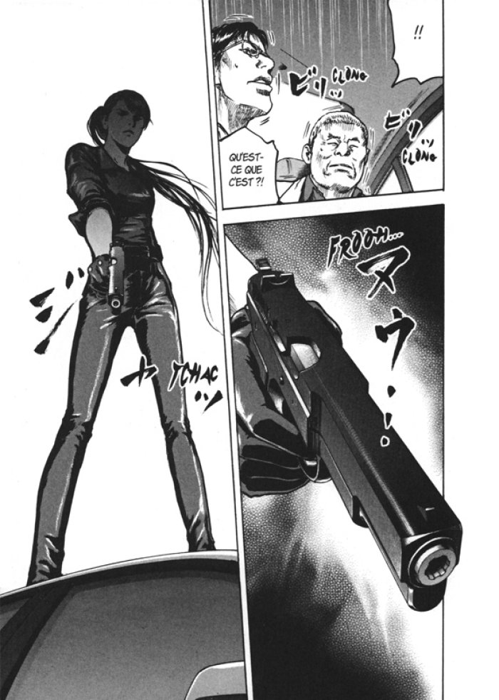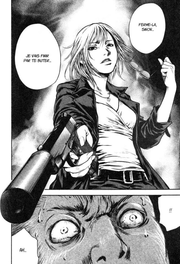 Nous suivons le parcours d'une policière qui est plutôt violente dans ses méthodes pour non pas arrêter mais flinguer les malfrats. Elle est de retour au Japon après un stage aux Etats-Unis. Elle sera très vite recalée dans un bureau avec comme collègue un flic ripoux et pervers. Cependant, son meilleur ami demeure toujours son pistolet silencieux. Elle dort même avec. J'ai bien aimé le trait graphique plutôt détaillé et dynamique. Les personnages bien que caricaturaux offre une facette assez intéressante car on est au niveau adulte et non lycéen (une fois n'est pas coutume). Des sujets sérieux qui sont également traités comme la traite des femmes, l'état voyou de Corée du Nord ou encore les sociétés-écrans... Le scénariste de "Ken le Survivant" ne se débrouille pas trop mal pour nous livrer un thriller explosif. Bref, un cocktail qui se révèle au final plutôt efficace.