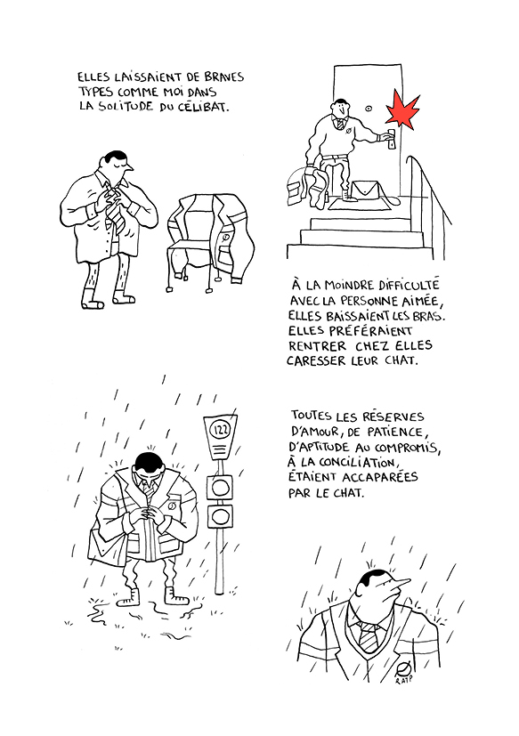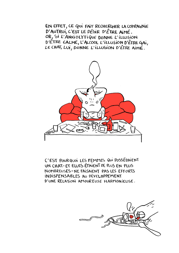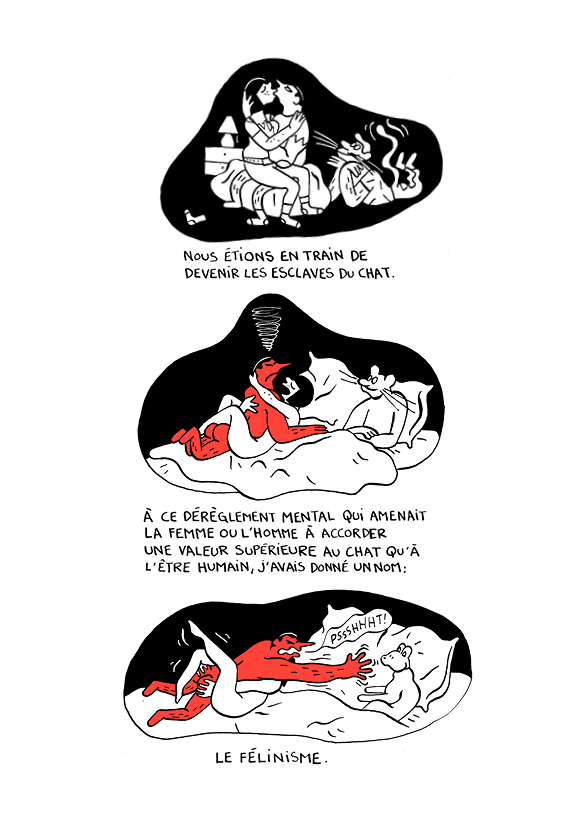 Un jour, François a une révélation : et si son célibat était dû aux chats ? Et si c'était à cause d'eux que les hommes n'arrivaient pas à construire une relation durable avec les femmes ? Mais si, voyons ! Avec ces félins à disposition, fini les compromis, la patience... à la moindre difficulté rencontrée par le couple, elle préfèrent rentrer chez elles et caresser leur chat... à ce dérèglement mental, François avait donné un nom : Le félinisme !