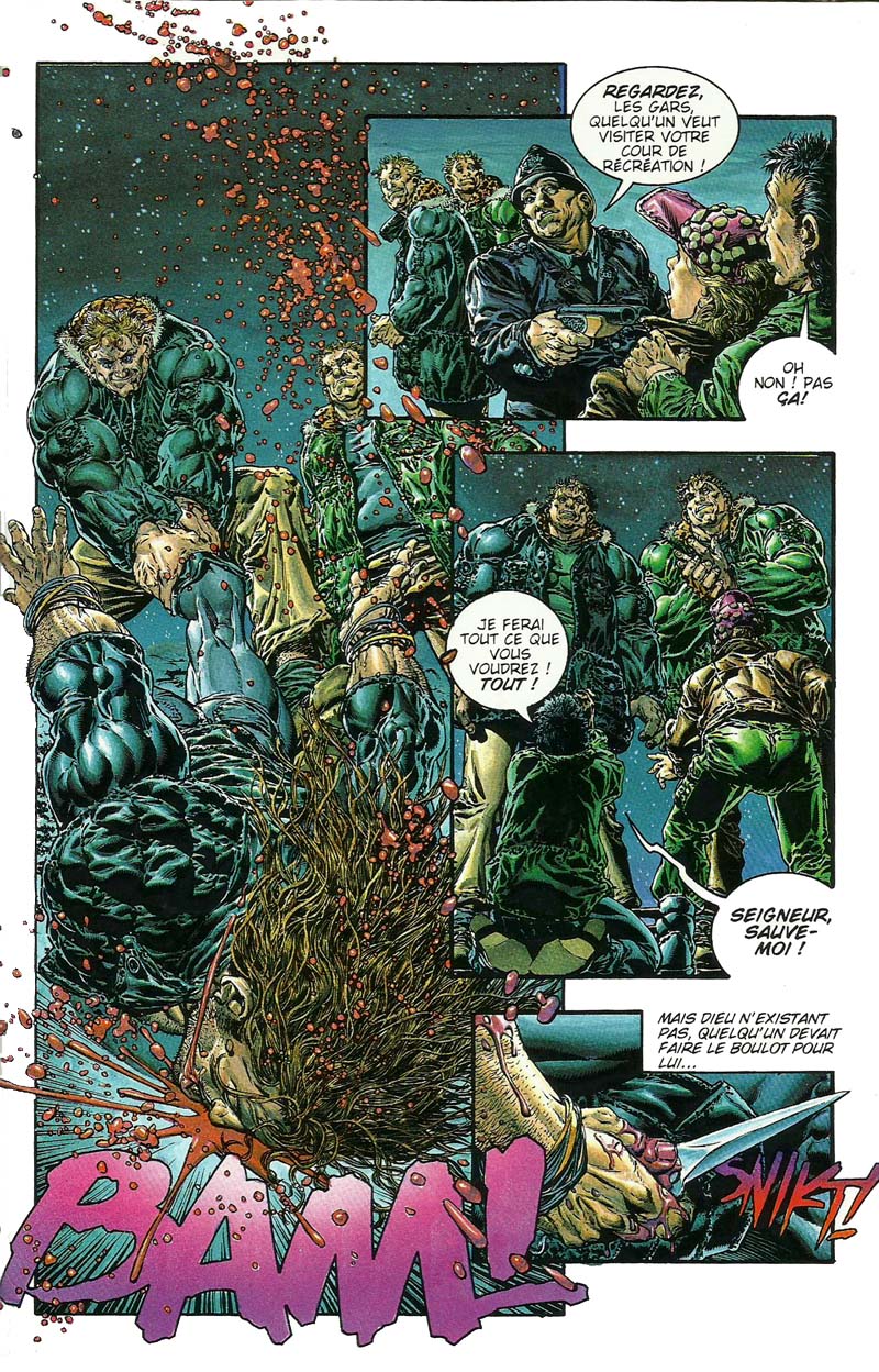 OMG ! Comme elle envoie cette BD ! Ca n'a sans doute pas la profondeur d'un Transmetropolitan, c'est en tout cas moins "sociologique", moins "politique" ... Mais ça envoie tout aussi fort ! Et ca fait preuve de beaucoup plus de mauvais goût. Tous ces gros c** défèquent littéralement leurs dialogues en permanence, et mettent en pratique leurs menaces dans la foulée. Ce qui est jouissif c'est bien ce passage à l'acte systématique. Ici pas d'insulte gratuite, pas de menace en l'air. Non, les pensées sont invraisemblables et sont toujours des promesses scrupuleusement respectées. C'est très extrême, mais jamais dégueu car toujours fun. Ca fait en fait un bien fou de voir un scénario jusqu'au-boutiste honoré par une si belle maîtrise du récit et des dialogues toujours cinglants. L'action permanente est servie par un dessin virtuose de bout en bout. Globalement, il y a une profusion, une absence de limite qui fait qu'on en sort vraiment repu. Je n'ose pas dire "culte" car il manque sans doute à cette BD une reconnaissance "universelle" mais pour moi c'est un vrai coup de coeur. Sincèrement.
