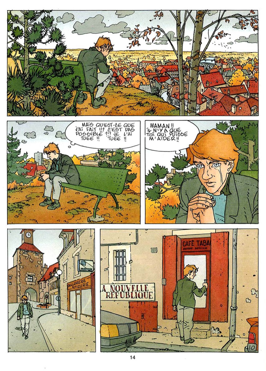 Une oeuvre moyenne d'Arno. Pas en raison des dessins qui sont magnifiques comme d'habitude avec Arno. Mais en raison du scénario plutôt léger et creux. En même temps ce récit où il ne se passe pas grand chose (un adolescent fugue d'un internat puis rencontre une jeune femme mais n'osera pas la toucher par timidité) est assez en osmose avec le mental du héros. La solitude sur la route, dans un petit village ou dans une forêt est très bien rendue (de la ligne claire sublime dans des paysages automnaux marrons et oranges). C'est pur, chaleureux et doux. Le hic c'est peut être les dialogues assez plats par rapport à l'extrême virtuosité du dessin Donc une bd qui ne plaira pas à grand monde en dehors des fans du style de dessin d'Arno dont je fais partie. Bizarrement toutes les bds et séries d'Arno c'est un peu le même problème quel que soit le scénariste (Alef-Thau, Augustin, Anton Six... ). Cela vient peut être du statisme des personnages et de la pauvreté des dialogues, je ne sais pas. Alors que ses dessins sont très beaux, très sensibles (je me répète mais je suis vraiment fan). Etrange cet auteur, qui d'ailleurs est decédé, paix à son âme.
