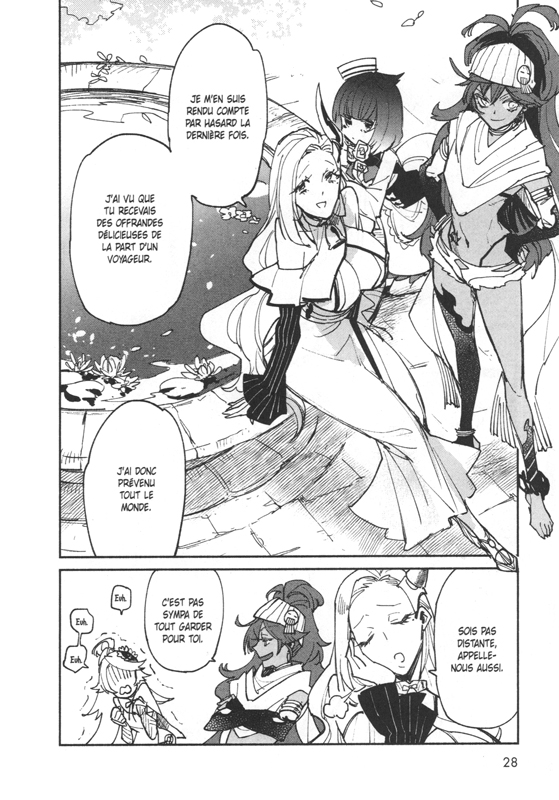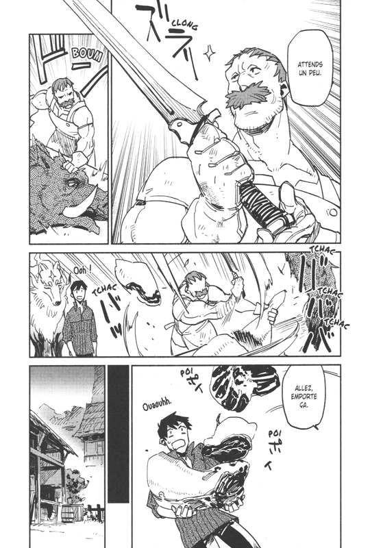 Dans la série idée à la con de mangaka : la suite ! Bon après le ménage chez les dragons, ou l'elfe agent immobilier pour dragon, dans la catégorie héros envoyé dans un monde de fantasy avec une capa pourrie je demande Hero Skill ! Là je crois qu'on a un champion avec sa capa "commande en ligne sur internet" ! Bon alors au final, vu que même si internet n'existe pas là-bas, un écran virtuel permet à notre héros de passer les commandes qu'il veut et de les recevoir instantanément ! Pratique ! Sublime même ! Sauf que notre jeune héros est plutôt du genre a sublimer les papilles et que c'est en cuistot de choc qu'il va s'en sortir. En effet, après avoir décliné l'invitation à sauver le monde après avoir été invoqué par le roi du Royaume de Reyseer avec plusieurs de ses camarades , il prend la poudre d'escampette et s'improvise donc cuisinier de voyage. Besoin d'un ingrédient ? Hop ! Achat en ligne ! Et les mets qu'il prépare vont conquérir de plus en plus de monde, jusqu'à un loup démon qui va accepter de devenir son animal familier et de le protéger en échange de trois repas par jour ! Ne cherchons aucune crédibilité à ce pitch complètement farfelu, mais au final je me suis laissé porter par le rythme et les péripéties de nos aventuriers cuistots. Ça ne mange pas de pain, le dessin est expressif mais limité et ramené au strict nécessaire, mais c'est assez drôle et entraînant. Une bonne tranche de divertissement en somme ! Je jetterai un œil à la suite qui je l'espère se révélera inventive, sinon j'ai quand même peur qu'on tourne vite en rond. (2.5/5)