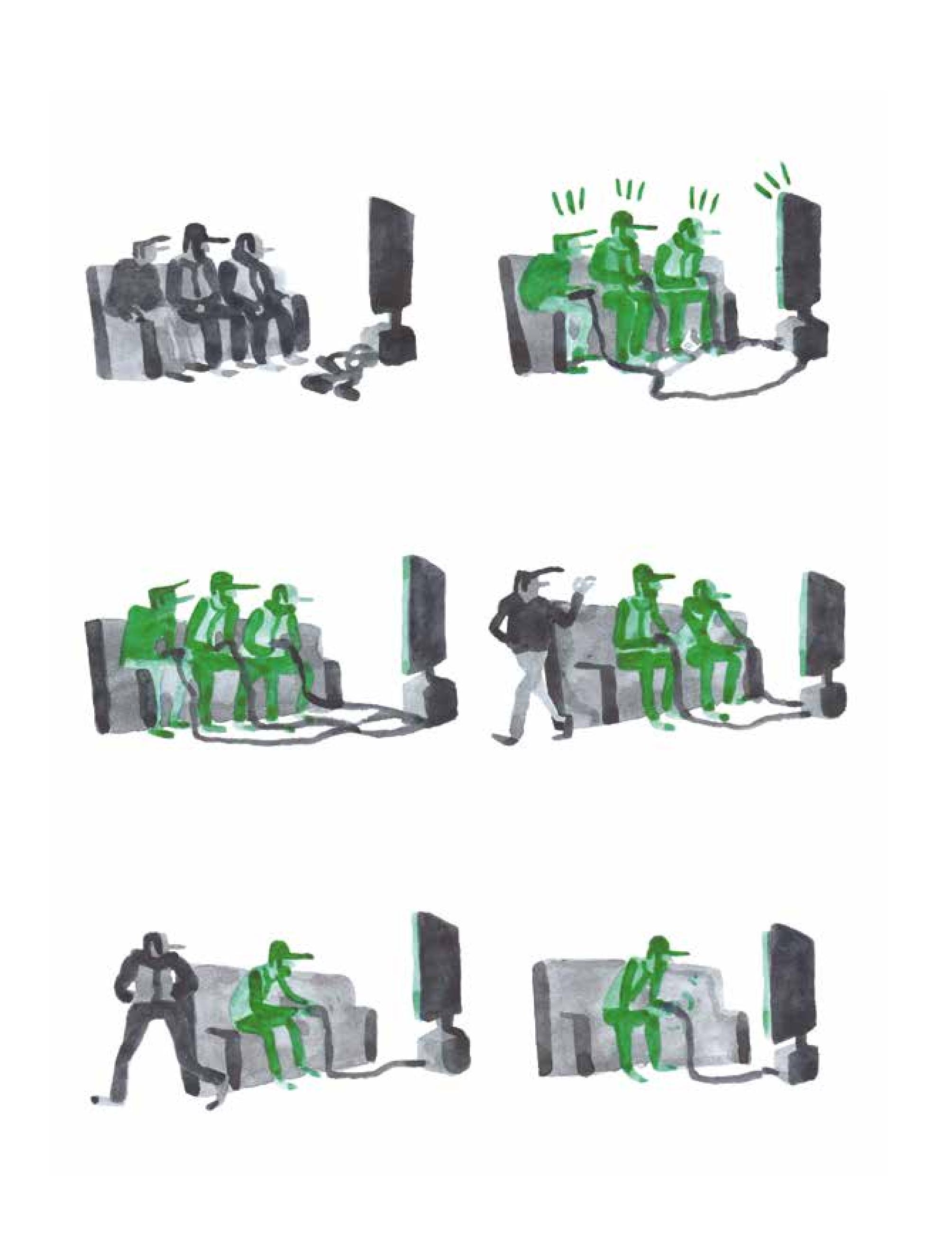 Cet album nous offre un exercice de style que je qualifierais de « typique d’un jeune auteur issu d’une école d’art ». C’est original et intelligent dans sa forme mais dépourvu d’une finalité identifiable (sinon le plaisir de l’exercice de style) et du coup, ce petit livre ne risque d’intéresser qu’un nombre très réduit de lecteurs, plus curieux de découvrir une technique narrative que de lire une histoire. A titre personnel, j’ai plutôt bien aimé. Il se dégage de ces récits une agréable ironie, tandis que Victor Hussenot parvient à transmettre des concepts parfois subtils avec juste ces codes de couleur. Une curiosité, donc, dont on sort en s’interrogeant sur ce qui nous lie, nous unit ou nous sépare. Pas essentiel mais intéressant (si du moins vous aimez ce genre de travail avant tout basé sur les techniques narratives).