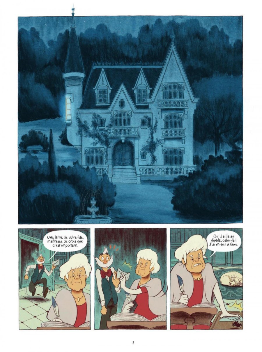 Sur le papier, cette bd s'annonçait comme plutôt intéressante : une vieille femme s'apprête à mettre la dernière main sur une encyclopédie des peurs, lorsque son chien le dévore (l'encyclopédie en question). Ne cédant pas à la panique, elle décide d'envoyer sa petite-fille (fraîchement débarquée) d'aller à sa place recueillir l'essence de ces peurs. Sur le papier, ça pouvait être pas mal, sauf que très vite j'ai déchanté. Si je n'ai rien contre l'humour, l'idée d'en parsemer l'histoire (qui est déjà fantaisiste en soi) ne me semble pas bonne... Et je me rends compte que le public visé par une telle série est en fait très jeune. Pas des primo-lecteurs, plutôt des préadolescents, qu'on n'estime pas forcément aptes à lire une bonne histoire... Les péripéties s'enchaînent sans vraiment être relevées, l'un des ressorts est le caractère acariâtre de la grand-mère, qui passe beaucoup de temps à houspiller son majordome, et franchement c'est lourd, même dans une lecture pour préadolescents... Côté dessin, je trouve celui d'Ewen Blain vraiment faiblard ; on a l'impression qu'il lorgne du côté de Miyazaki première époque, celui de Heidi, sans en posséder le charme primal. Il reste une jolie maquette, qui respecte l'idée d'encyclopédie, mais ne cache pas vraiment la faiblesse de l'ensemble.