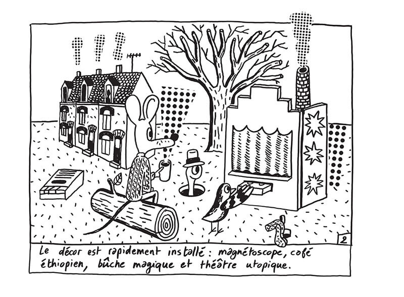 Un oiseau s'introduit par la fenêtre de la chambre d'une souris et lui tend une cassette VHS. Ni une ni deux, le mammifère aux rondes oreilles s'installe, un café à la main devant sa télévision - en réalité un ravissant théâtre miniature - pour visionner le film.