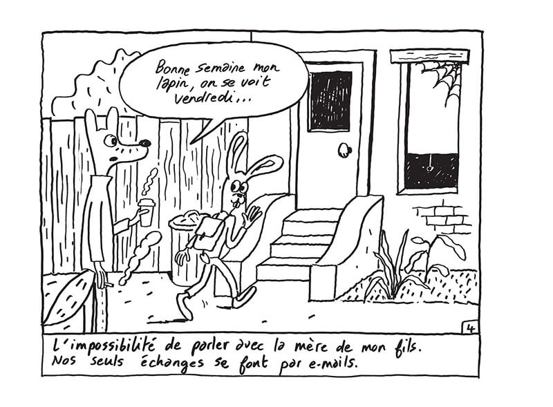 Les images défilent, découvrant la vie de Joseph, jeune père à tête de renard qui travaille dans l'animation à New York et de Paul, son fils. Nous voilà embarqués pour un voyage dans le temps et l'espace, qui nous mènera des deli de Brooklyn aux briques rouges de Roubaix, de la vie à deux dans un étroit appartement new-yorkais au quotidien d'une famille recomposée dans une maison du nord de la France. Chronologique et elliptique, Littoral se déroule comme un film familial dont les images, capturées sur plusieurs années, s'altèrent parfois - cassette VHS oblige. Les épisodes présentés forment un collier de souvenirs sur lesquels Antony Huchette, avec son trait expressif, ses motifs et sa ronde de personnages à tête d'animaux, dépose une lasure douce et magique.