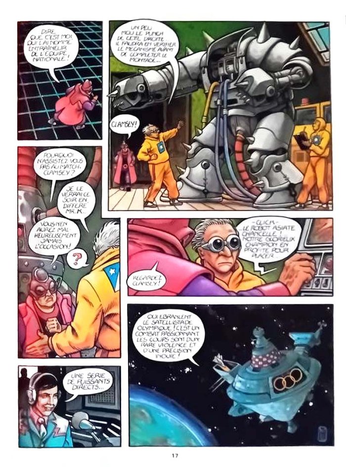Seul à la baguette ou accompagné au scénario par quelques compères (voir la fiche de l’album), Voss développe dans ces 8 histoires une SF plutôt datée, mais pas exempte de charme. Son dessin au trait gras (la colorisation accentue cet aspect) fait parfois penser à Moebius ou Macebo, et signe en tout cas une époque, celle des grandes heures de Métal hurlant. Les histoires sont éclectiques – eu égard aux différents scénaristes – et le plus souvent frustrantes. En effet, elles sont souvent trop courtes pour parvenir à développer, si ce n’est une intrigue, au moins une ambiance – même si parfois la chute parvient à sauver le tout (comme sur Le Piège ou La Manif). A noter que dans la dernière histoire, qui donne son titre à l’album, apparaissent Tiger et Lucrécia (au look improbable), déjà vus avec un rôle plus important dans l’album publié l’année précédente par Voss (L'Arbre à came). Cela lui permet de développer un univers Rock/SF très à la mode au sein de Métal Hurlant. Mais bon, globalement, c’est un album qui m’a laissé sur ma faim.