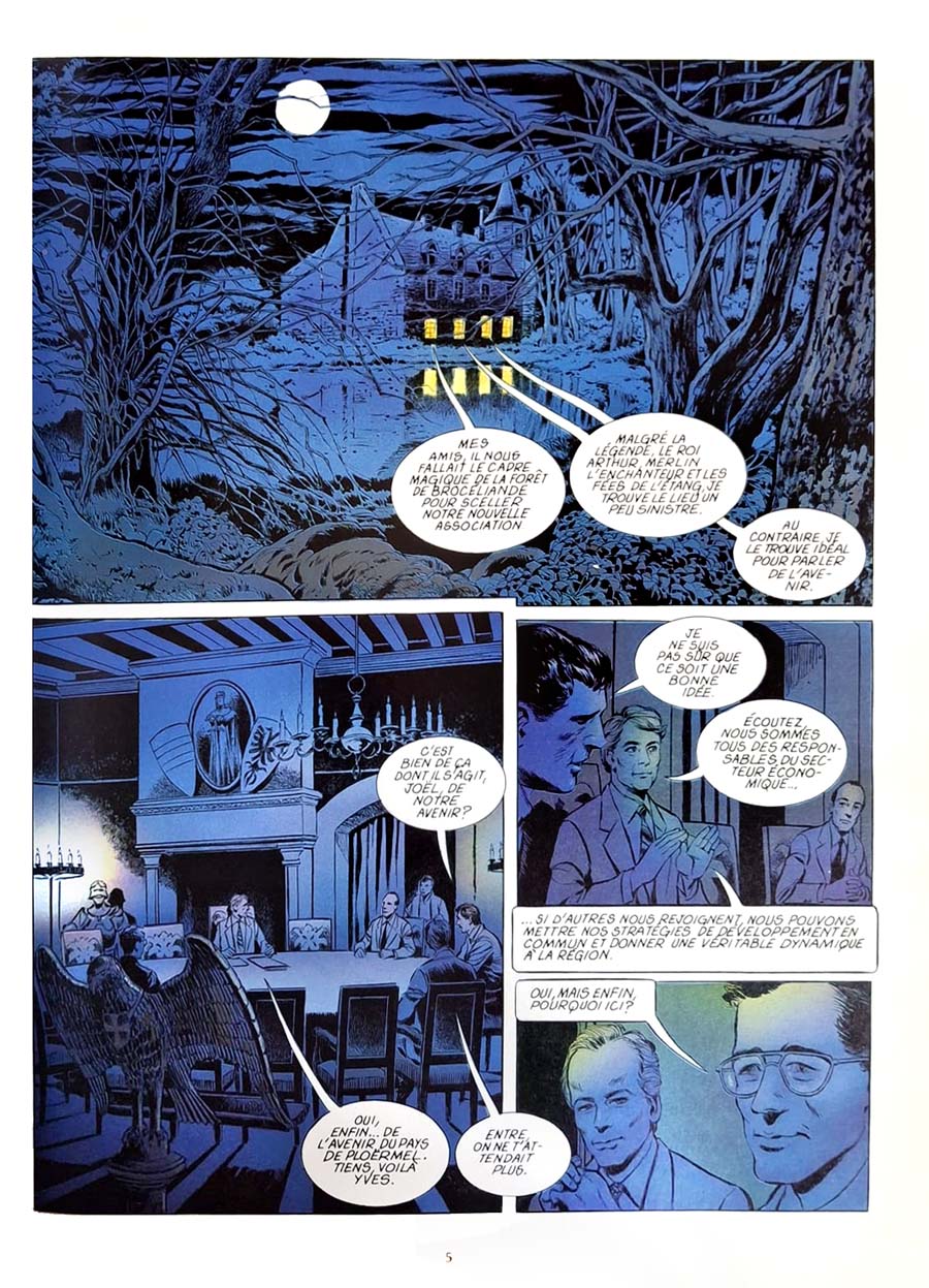 Eh bien voilà donc de la bonne BD publicitaire bien pourrie. Un travail de commande de la com-com de Ploërmel. Je précise pour les non bretons : il s’agit d’une commune moyenne du nord du Morbihan, pas maritime donc, et qui pour attirer le touriste vers l’intérieur des terres, mise sur sa proximité avec la forêt de Brocéliande. Et aussi sur son économie en tentant de glorifier les entreprises locales. Ce qui donne ce qui suit : gloire à nous, les maires, notables divers et entrepreneurs du coin. Assez pathétique. On les voit discuter à la lueur des bougies en faisant l’inventaire de leurs mérites respectifs, puis faire la tournée du canton, histoire de montrer un peu les paysages… et les commerces locaux (bonjour la pub pour l’Intermarché du coin, on voit le bâtiment et même le camion qui passe sur une autre vignette…). Pathétique, je vous dis ! Rien à tirer de la partie BD. Un peu plus intéressante est la partie historique en supplément, surtout sur l’histoire ancienne car il s’agit d’une implantation humaine assez riche : quelques mégalithes, des vestiges médiévaux et une paroisse d’un duché de Bretagne. Après, pour la partie économie, on en revient à « Gloire à nous, etc... ». Le dessin est correct pour une œuvre de commande. Ce devait être un travail alimentaire comme un autre, il en faut j’imagine. Un avantage pour moi, la locale, on reconnaît bien les bâtiments, églises et châteaux.