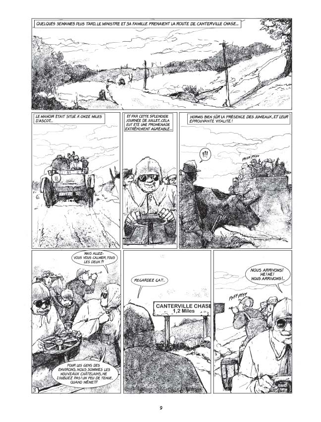 Je ne connais pas vraiment l’œuvre de Oscar Wilde. Je n’ai lu aucun de ses romans ou histoires courtes, et en BD je n’ai lu que Dorian Gray (qui m’a d’ailleurs beaucoup plu). Je ne savais donc pas trop à quoi m’attendre en lisant l’adaptation de ces deux contes par Rodolphe et Marcelé, mais comme j’aime généralement les albums de ce duo d’auteurs, je me suis lancé, et je ressors satisfait de ma lecture. Le ton humoristique m’a surpris, je m’attendais à des histoires victoriennes un peu déprimantes, mais il s’agit plutôt de farces teintées de fantastique, de contes farfelus aux personnages hauts en couleurs, remplis de situations absurdes et cocasses (les mômes terribles qui font peur au fantôme de la demeure hantée, quelle chouette idée !) On retrouve le trait charbonneux de Marcelé, que j’aime beaucoup, mais qui est peut-être plus adapté à l’ambiance « château hanté » de la première histoire. Un chouette moment de lecture en tout cas.