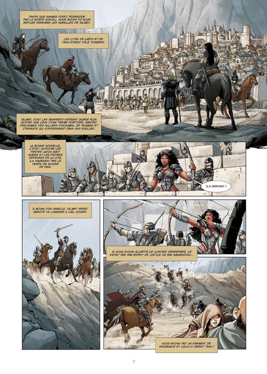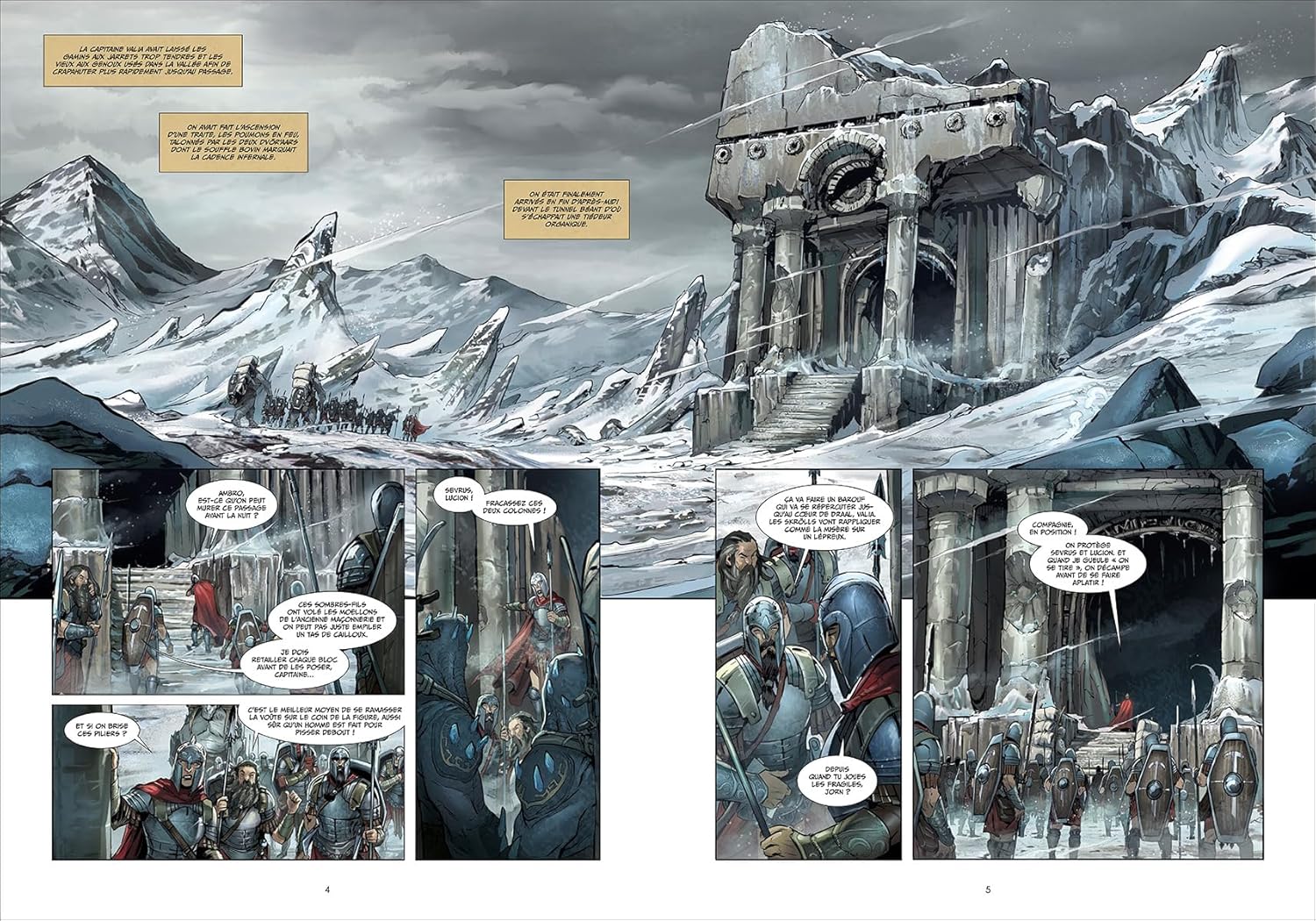 « Une dark fantasy implacable, entre le réalisme brut de La Compagnie Noire et l'épique flamboyant de David Gemmell ». Ouh là, alors attention, parce que quand je lis quelque part « David Gemmell » en référence, je plisse des yeux et je mets ça dans mon panier des choses à lire. En plus Glen Cook et La Compagnie Noire moi j’ai pas spécialement accroché au style du gars mais j’aimais bien l’idée. Donc si ça peut être fait façon Gemmell-style, aller, je dis banco. J’ai confiance, c’est écrit par Nicolas Jarry qu’on peut reconnaître sans problème comme un digne héritier de l’écrivain anglais. Alors, qu’est-ce que ça donne ? Je trouve ça pas mal, maaaaaais malgré 5 tomes (4 actuellement parus) je trouve les histoires un peu « rushées ». Le contenu est dense, trop peut être pour de la bande dessinée, les personnages j’ai un mal fou à retenir leur nom, ça commençait dès le premier tome avec le second de Tulas qui n’a pas de background donc on le liquide, la relation père-fils, zéro développement donc on s’en fout un peu etc. ça partait mal mais au final dès le tome suivant c’est déjà mieux foutu. En fin de compte on est sur la même structure que les Elfes, Nains, Orcs, Mages et cie de chez Soleil, un album = une histoire = un nouveau dessinateur, sauf que là on est pas en Aquilon mais dans le monde de « Empires ». Donc si on aime Nains comme ça été mon cas à une époque, bah c’est le même auteur, vous serez pas dépaysé. Il faut s’accrocher mais si on lui laisse le temps, c’est plutôt une série sympatoche à lire. Rien de révolutionnaire, on est dans les thématiques chers à Nicolas Jarry, et ça fait bien le café. En revanche niveau design, j’accroche pas. Enfin, ça dépend, le tome 1 par exemple : alors c’est jolie par séquence, il y a des planches hollywoodiennes, mais le style de Ruiz ne suscite pas d’émerveillement chez moi. Le character design par exemple, Tulas avec sa dégaine de Witcher TF1+, les armures qui font très fantasy mais non pas l’air du tout fonctionnelles, architectures et décors ne m’ont fait ni chaud ni froid. Et les couleurs informatiques, jamais j’arriverai à m’y faire. Le tome 2 avec Vax au dessin et Fabris aux couleurs déjà ça ça me plaît davantage. Et là on perçoit bien le côté « Compagnie noire » qu’on nous a vendu. Voilà, comme chez la concurrence Soleil, faut trier le bon grain de l’ivraie. Y a 5 tomes (peut être une saison 2 ? ), faites vos choix. Donc bilan mitigé. Je ne suis pas sûr de rester un fidèle mais j’ai quand même une petite curiosité en cas de saison 2. Sinon j’ai une meilleure idée à suggérer aux éditeurs : pourquoi ne pas obtenir les droits pour adapter directement les romans Drenaï de David Gemmell ? Ce serait carrément mieux.