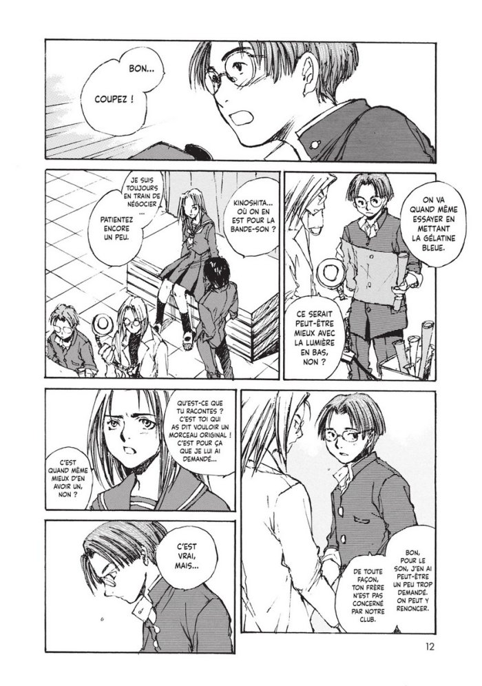 Mouais... C'est pas trop mon genre d'histoire : unetelle aime untel mais untel aime une-autre-telle mais cette autre-telle ne peut pas l'aimer en retour car elle a vécu un drame récemment, en outre un-autre-tel-de-plus aime l'autre-telle et ne veut pas voir untel s'en approcher, etc... Ca aurait pu carrément tourner à la petite romance à 2 balles si tout cela se faisait sans dialogue entre les protagonistes et "stupidement" comme dans pas mal d'histoire pour jeunes filles. Mais il y a un peu plus de maturité dans ce scénario-ci. Dans Sing Yesterday for me, les personnages agissent de manière assez mature; ils se parlent, s'expliquent leur amour ou le pourquoi de leur rejet. C'est mené de manière assez intelligente. Il reste une petite part de romantisme cependant, et donc ça donne un global pas désagréable à lire, pas un roman à l'eau de rose sans cervelle. Côté dessin, moi je n'ai pas trop aimé au départ. Je trouvais par exemple les doigts et les ongles des personnages assez affreux. Et je trouvais aussi le dessin un peu trop crayonné, trop hésitant. Mais au fil de la lecture, je m'y suis bien fait sans le trouver exceptionnel pour autant. Ca se lit bien mais il ne se passe pas grand chose : un imbroglio amoureux sans grande originalité ni vraiment prenant. Juste pas mal, quoi...
