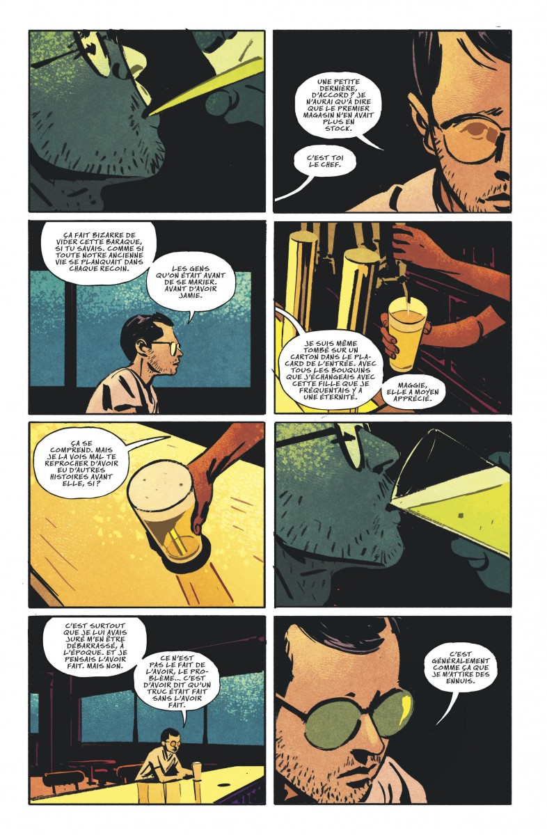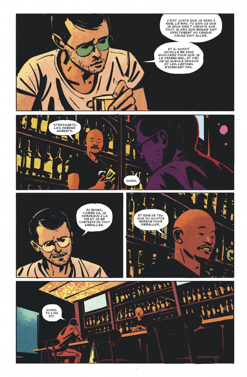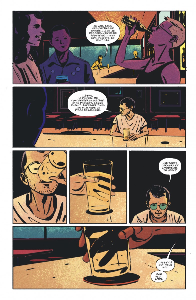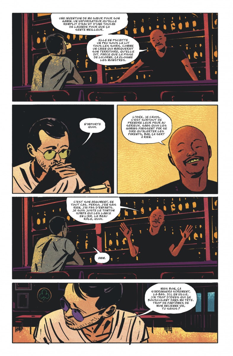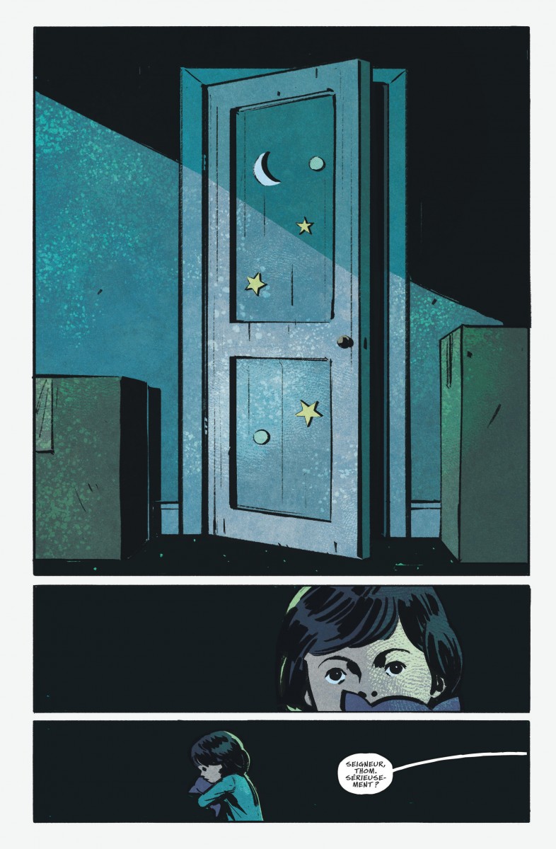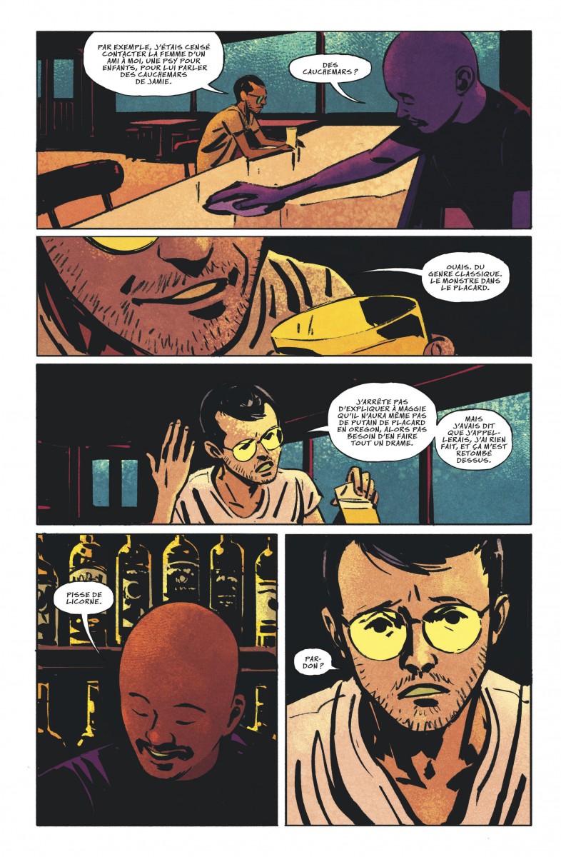 J’ai acheté cet album de James Tynion IV (The Department of Truth, Something is Killing the Children) pour lire un soir d’Halloween (en 2022, en VO), aguiché par la superbe couverture aux tons horrifiques, et à ce titre je ressors déçu de ma lecture. On comprend en effet assez rapidement que les cauchemars de Jamie sont des manifestations de problèmes finalement assez terre-à-terre, à savoir les engueulades de ses parents. L’album propose certes une réflexion intéressante et pertinente sur les effets néfastes de nos comportements, nous parents, sur nos progénitures. Mais disons qu’il faut aussi s’enfiler des pages d’élucubrations d’un protagoniste un peu mou et pas toujours très attachant. La mise en image de Gavin Fullerton (inconnu au bataillon) est en tout cas réussie. Une lecture sympathique dans le genre roman graphique relationnel, mais passez votre chemin si vous êtes à la recherche d’une histoire horrifique. Je note que Urban fait aussi coïncider la sortie de l’album avec le mois d’Halloween… oui, je suis cynique.