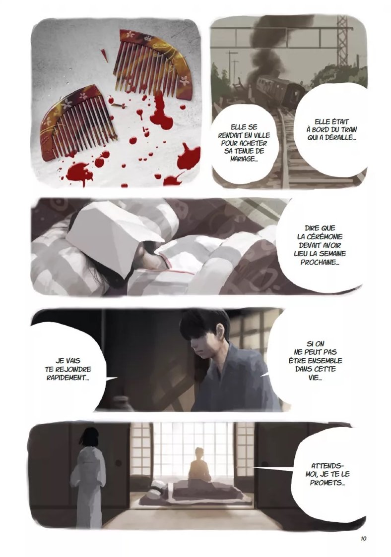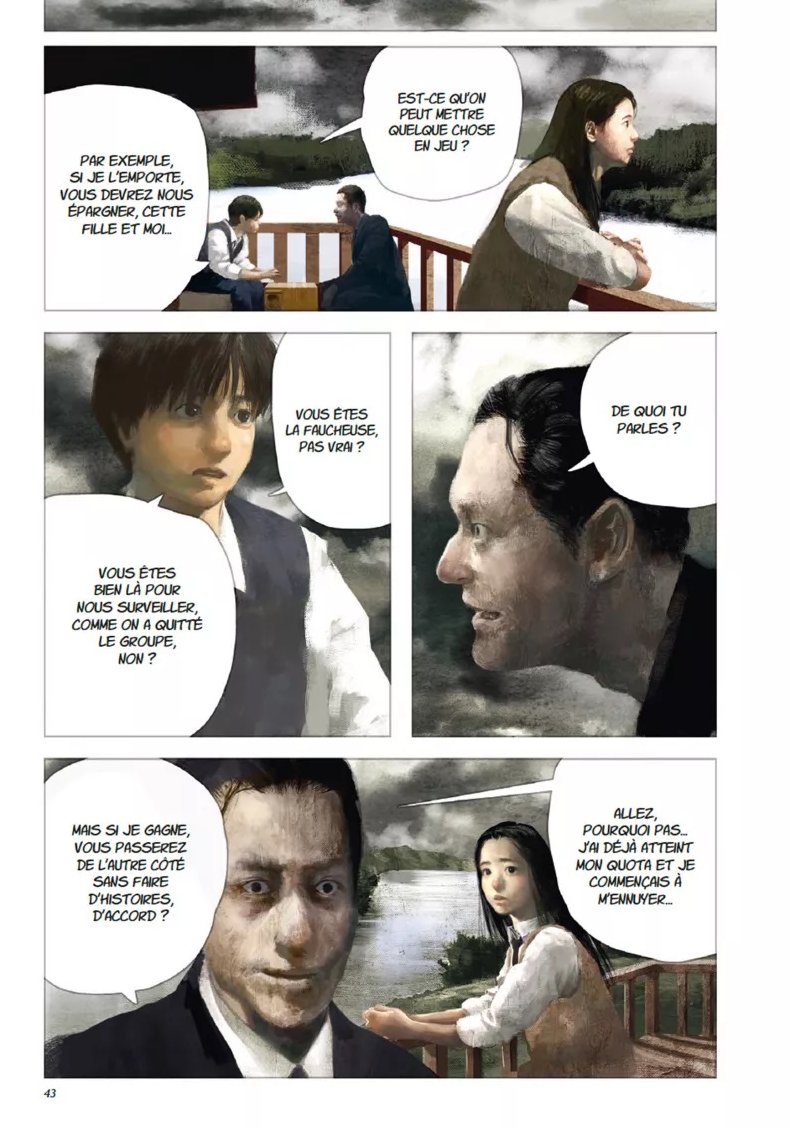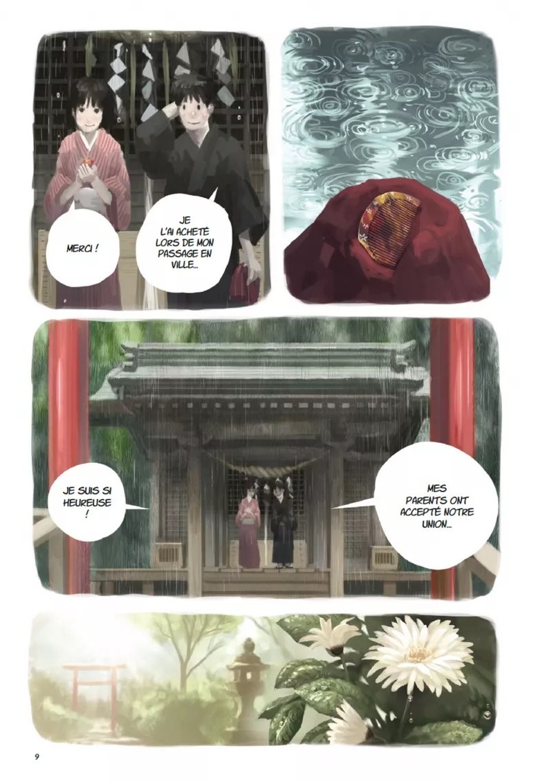 Après avoir fait de Shiro Kuroi un de ses auteurs coups de coeur (Leviathan, Dragon Hunt Tribe), la maison Ki-oon nous propose un recueil de ses histoires de jeunesse, jusque-là inédites en "vraie" publication. Leur point commun est l'évocation d'une maison située dans les Limbes, au sein de laquelle les morts peuvent prendre un peu de repos avant de traverser la rivière qui les sépare de la mort. L'occasion pour eux de s'y arrêter, de réfléchir (à revenir, qui sait ?) ou de faire des rencontres parfois inattendues. Comme l'indique l'auteur en postface, c'étaient des récits de jeunesse, sans véritable ambition, et d'une qualité peut-être un peu basse. On a un peu l'impression que certains sont inachevés, inaboutis, qu'ils manquent un peu d'écriture parfois. Mais il s'en dégage néanmoins une atmosphère un peu particulière, pas du tout éthérée, mais tout de même suspendue, hors du temps, comme on peut s'imaginer que sont les Limbes, quand on y croit ou qu'on les évoque. Cette atmosphère est renforcée par le traitement en couleurs, avec des tons doux, qui imprègnent fortement les histoires. Graphiquement Kuroi avait déjà un sacré niveau, un style assez réaliste et pas du tout figé. Par la suite il s'est éloigné de ce style natif, mais je pense que s'il y revenait dans de futurs projets, ce serait vraiment beau. Bref, un bon moment de lecture, assez émouvant au final.