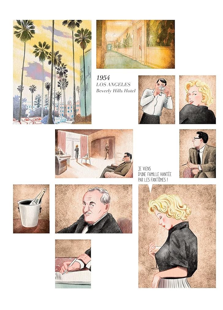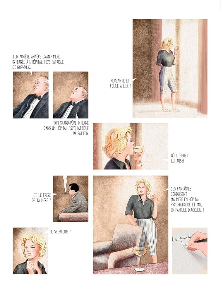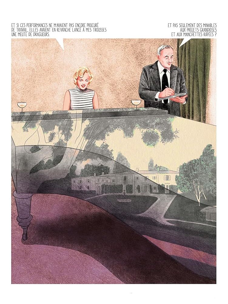 Je n'ai pas été du tout convaincu par ma lecture. Bien sûr je ne suis pas très "people" et la vie intime des célébrités ne m'intéresse pas spécialement. Pour autant Marilyn Monroe reste un monument de la culture populaire dont la vie dépasse fortement le cadre du cinéma. Ayant lu la série de Swysen , Les Etoiles de l'Histoire, je n'ai pas découvert grand chose de nouveau dans le parcours de l'actrice. J'avais même préféré cette première lecture qui était plus complète et avec plus de recul sur certains points de la vie de l'actrice. En effet ici les autrices collent beaucoup au récit autobiographique de la star ce qui donne une impression de narration hagiographique misérabiliste assez discutable sur certains points. Depuis de nombreuses biographie ont été réalisées sur Monroe et on s'aperçoit que la star fait en sorte de charger la barque dans de nombreux domaines en prenant des anecdotes d'enfances vécues par d'autres. De même la question de la paternité ne pose plus de question aujourd'hui ( tests ADN) et est différente de celle évoquée dans la série. J'ai donc eu l'impression que les autrices reprenaient un texte essentiellement fait pour vendre une personnalité au début de sa carrière afin de l'accrocher au cœur du public américain. En effet elle y joue souvent la jeune fille pure entourée de mâles libidineux qu'elle repousse vaillamment. Peut être ou pas, de toute façon cela ne m'intéresse pas. Enfin cette abondance de "Je" m'a rendu la lecture souvent pénible. Le graphisme de Revel est moderne par son découpage et précis dans ses traits. Pourtant je l'ai trouvé assez froid ce qui est paradoxal compte tenu du magnétisme sexuel que développait Monroe. De plus le choix de l'entretien dans une chambre donne un résulta assez statique. Une lecture qui m'a déçu.