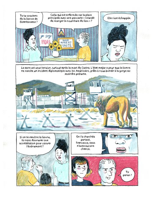 Arrivés à Cuba pour interviewer Castro, François, journaliste aguerri, et Nikita, jeune pigiste, apprennent sa mort. Les cendres du comandante sont acheminées à Santiago, berceau de la révolution, avec une halte secrète à Guantánamo pour dénoncer l'occupation américaine d'une partie de cette province. Un scoop en or ! Mais un lion évadé du zoo menace d'entraîner une crise diplomatique majeure…