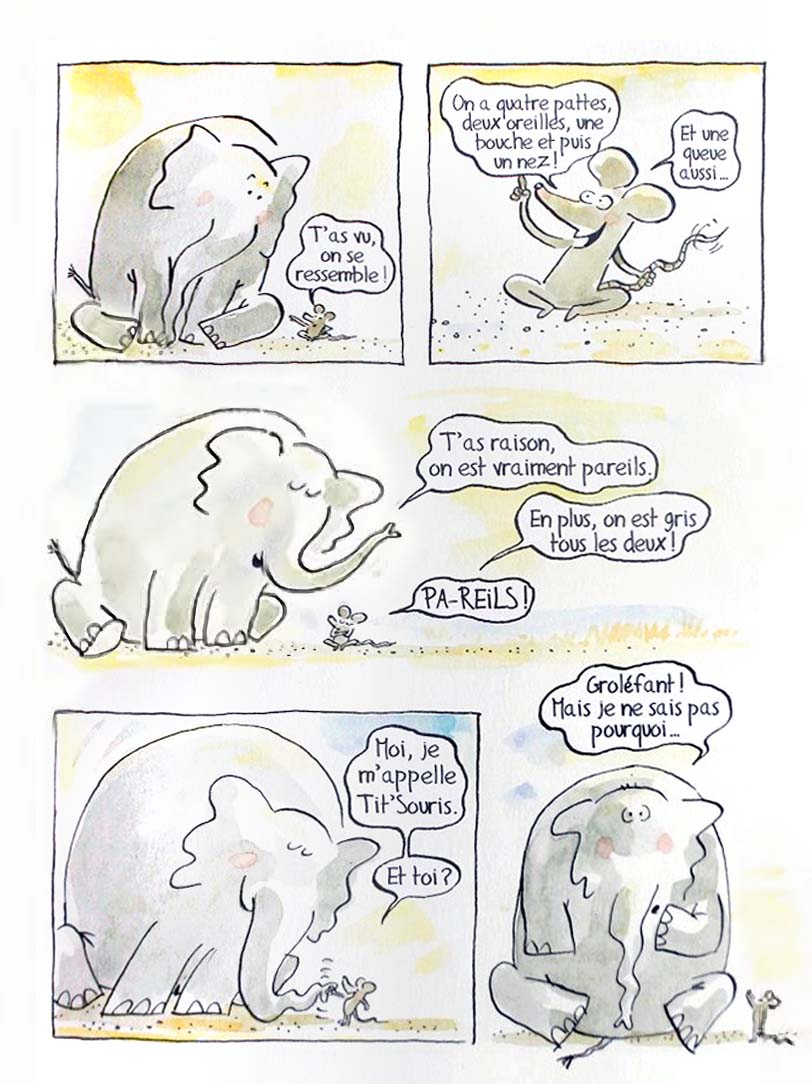 Groléfant et Tit’Souris sont amis pour la vie, à la manière d’un Calvin et Hobbes pour les plus petits ! Un nouveau format plus proche des BD classiques.