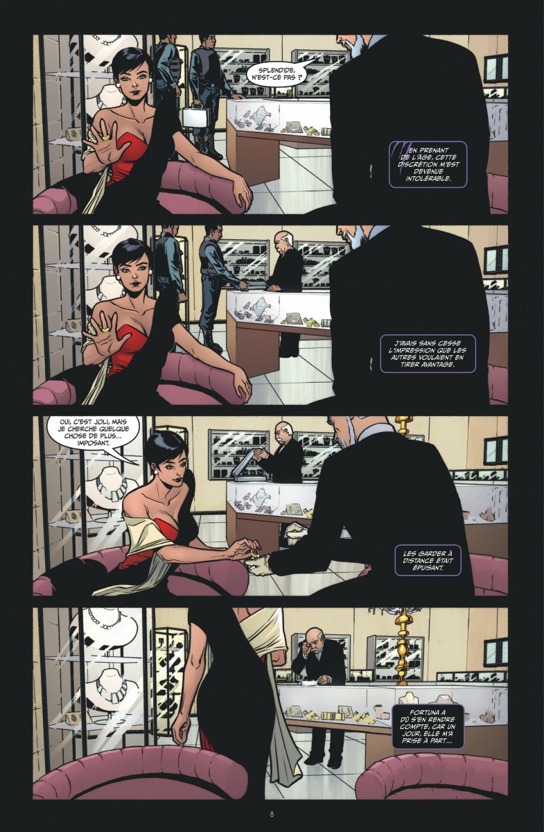 Catwoman est un personnage que j'aime bien, mais je ne suis pas toujours convaincu par les séries la mettant en vedette. Il faut dire que cette série montre Catwoman en dehors de Gotham et comme c'est souvent le cas lorsque Batman vit des aventures en dehors de la ville, cela m'a vite ennuyé. Pour moi, Gotham est totalement intégré à Batman et son entourage et on ne peut se passer de cette ville. À la limite, cela ne m'aurait pas dérangé si au moins les récits étaient palpitants, mais la grosse méchante de la série qui pourrit la vie de Catwoman durant 3 tomes est vraiment sans intérêt. Les seuls moments qui m'ont un peu intéressé était lorsque Catwoman interagissait avec d'autres super-vilain comme ses scènes avec le Pingouin. Le reste c'est vraiment du comics de super-héros fade avec des grosses ficelles et de la facilité à la pelle. Il y a plein de dessinateurs et leurs styles vont du pas mal au franchement pas terrible. À moins d'être vraiment un gros fan de Catwoman, cette série est vraiment dispensable.