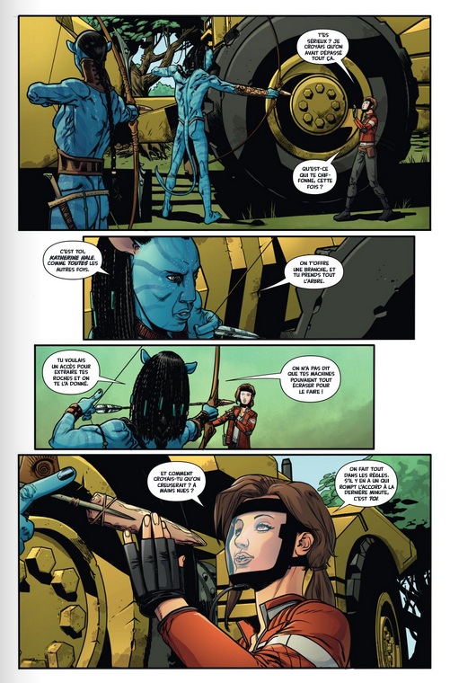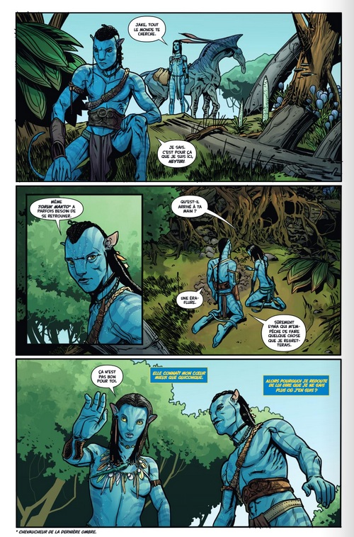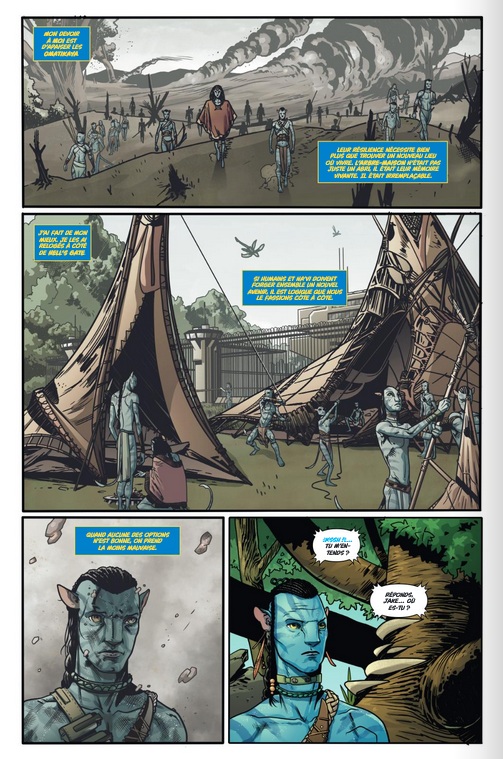 Bon bon bon... Autant j'avais apprécié le premier film, autant les adaptations que je découvre me laissent la plupart du temps sur ma faim. Celui-ci est le troisième de l'univers que je lis et c'est celui que j'aurais le moins apprécié. Les deux premiers étaient assez quelconque, ce dernier est médiocre. Le dessin de Josh Hood est sec et rigide, ce qui est assez problématique à mon sens quand on dessine des Na'vi, et le scénario de Jeremy Barlow tiendrait presque sur une feuille de papier à cigarette... 96 pages pour ça ??? Franchement ça tient en dix pages le coeur de l'histoire... Et l'intérêt de l'histoire est au mieux anecdotique dans le contexte de cet univers ; une banale histoire de rivalité et de vengeance... Bref, à moins d'être un aficionado d'Avatar, cet album n'a que très peu d'intérêt.