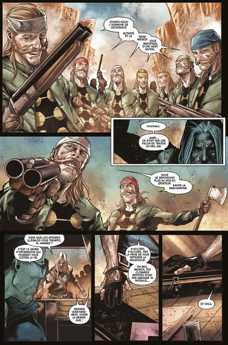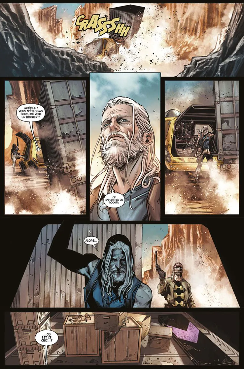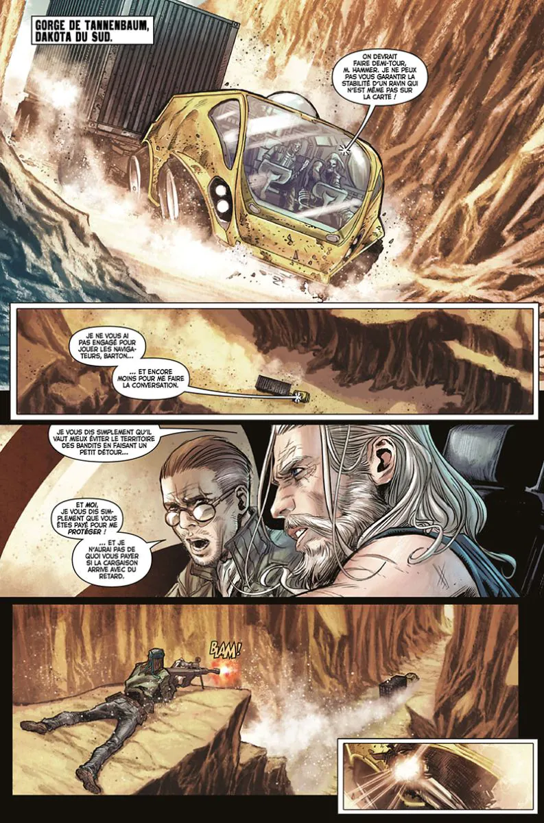 Old Man Hawkeye est un récit haletant centré sur l’action et la vengeance, dans la veine sombre et violente d’Old Man Logan. Mais ici, l’histoire prend une dimension plus intime en suivant Clint Barton à un moment où il est diminué : il n’est pas encore totalement aveugle comme dans Old Man Logan, mais ses capacités sont déjà affectées, ce qui rend ses combats et ses choix plus difficiles et sa détermination encore plus impressionnante. Cette vulnérabilité donne au personnage une profondeur nouvelle, en montrant qu’un héros peut être fragile sans perdre son courage ni sa volonté de se battre. Les dessins de Marco Checchetto amplifient cette tension. Son style puissant et dynamique rend chaque scène de combat brutale et viscérale, tout en traduisant avec justesse la fatigue et la résilience de Hawkeye. Le trait accentue la noirceur de l’univers tout en rendant palpable la vulnérabilité du personnage, ce qui renforce l’immersion. Ce préquel enrichit donc l’univers d’Old Man Logan en donnant enfin la parole à un héros souvent relégué dans l’ombre. On découvre un Clint Barton en pleine mutation, entre force et faiblesse, ce qui rend son parcours plus humain et son combat plus poignant. Old Man Hawkeye réussit à combiner action, intensité visuelle et exploration subtile de son protagoniste, offrant aux lecteurs un récit à la fois spectaculaire et émouvant.