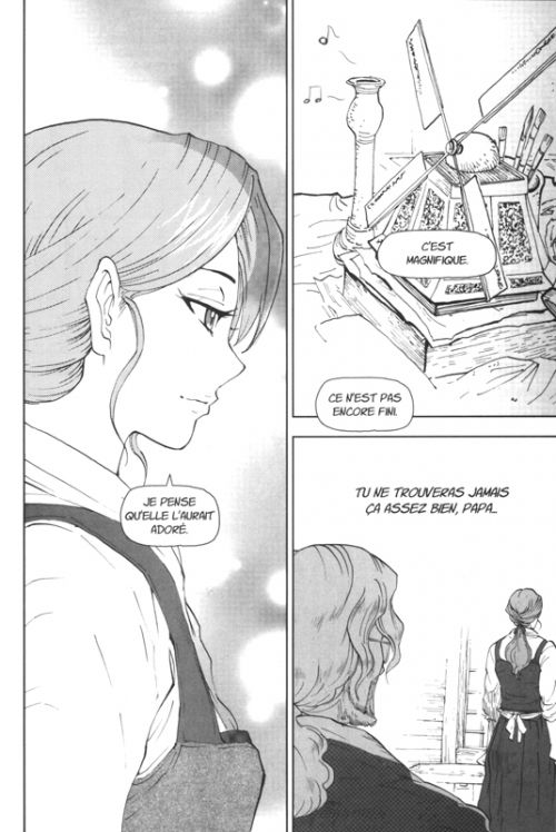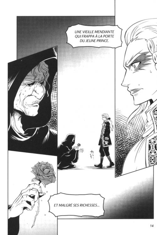 Alors voici donc la version manga d'un film musical, lui-même adaptation d'un premier film d'animation, lequel a tourné à la sauce Disney un conte-type qui est très différent de ces différentes versions. Et toujours produit par Disney, qui donne son nom à la collection éditée par Nobi-Nobi, sans que le nom d'aucun collaborateur n'apparaisse dans les deux volumes. Je suis déjà très réservé sur le premier film d'animation, qui date des années 70, et cette adaptation en manga est d'une grande mièvrerie. Je n'ai pas vu la comédie musicale, le peu que j'en connais me donne l'impression d'être cucul au possible et me donne des poussées d'urticaire. Les réactions des personnages sont incompréhensibles, le revirement de sentiments de Belle vis-à-vis de son geôlier semble s'opérer dès sa première nuit, il y a certaines allusions qui m'ont échappé, et j'avoue que certaines séquences sont presque cryptiques. Et c'est la même chose dans les deux volumes, chacun racontant l'histoire du point de vue de l'un des deux personnages. Le premier a d'ailleurs failli me tomber des mains dès le premier tiers. Mais je me suis accroché pour aller au bout, le dessin étant de qualité moyenne, sans plus. Mais le constat est sans appel : c'est plutôt mauvais dans l'ensemble.