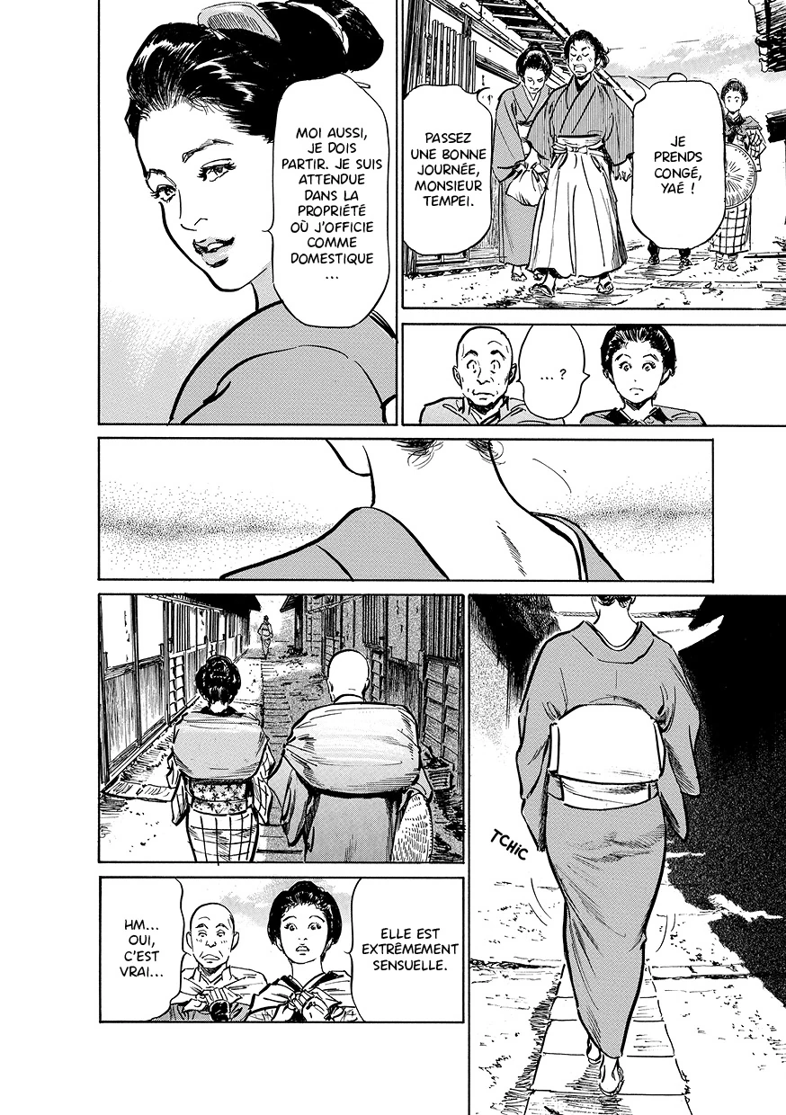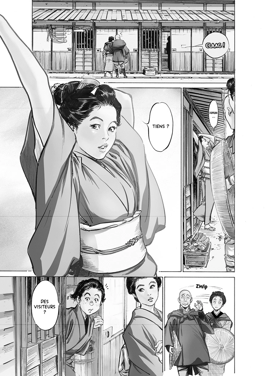 J'aurai pu mettre 4 étoiles à cette série, mais certains clichés reviennent trop souvent dans la série,mais hormis ce point noir on tient une bonne série qui s'adresse à un public adulte avec son lot de situations cocasses. Nous ne sommes pas juste dans une succession de scènes de sexes , même si l'intrigue reste légère les auteurs ont pris le temps de bien installer les protagonistes et d'étoffer leur background au fil des albums , ce qui leur donne une certaine épaisseur. Au cours de ma lecture certains passages m'ont fait penser à Lone Cub and Wolf concernant le quotidien des petites gens , mais la comparaison s'arrête là . Le dosage est bien équilibré entre les ébats des protagonistes ,les séquences d'actions et une bonne dose d'humour que se soit pour les dialogues ou les mimiques des protagonistes. Le dessinateur a un beau coup de crayon , les femmes sont très bien dessinées surtout au niveau des seins, en ce qui concerne les parties intimes femme ou homme les zones sont blanches. Les scènes de combats par contre elle sont brèves , on sent que c'est pas dans ce domaine qu'il excelle. Tout ça pour dire que j'ai passé un très très bon moment de lecture.