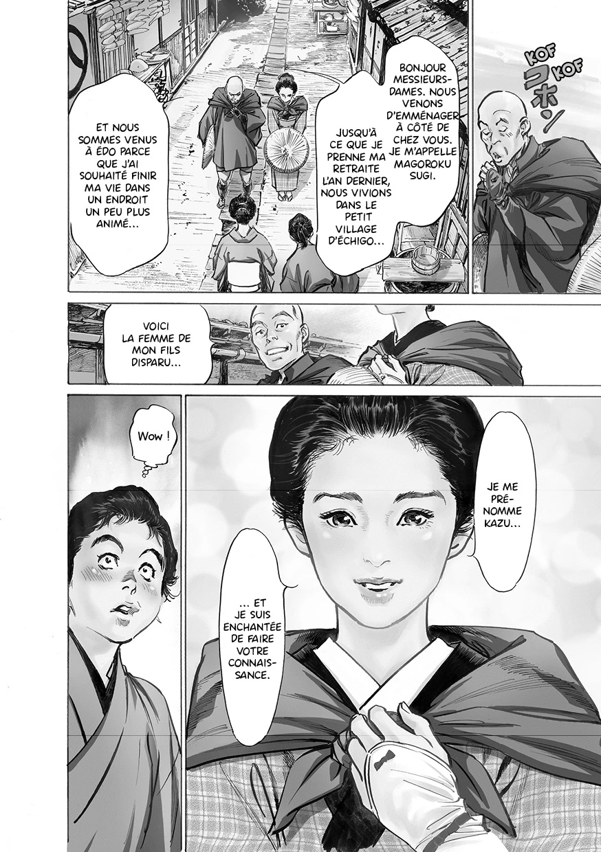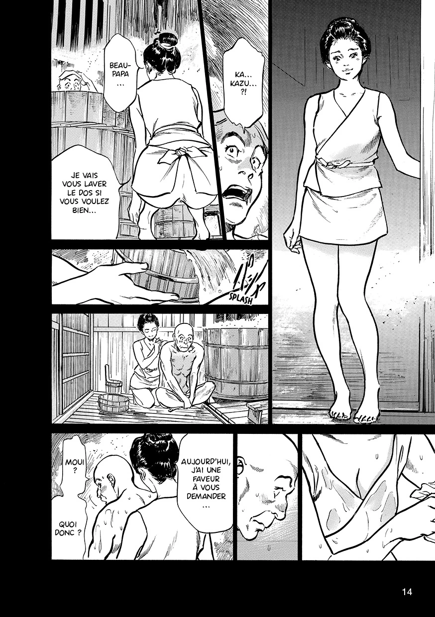 Japon, XIXème siècle. Le fils de Magoroku Sugi, qui venait de lui succéder et d'épouser la jeune et jolie Kazu, meurt subitement de maladie. Le vieux patriarche n'a d'autre choix que de reprendre sa place de chef de clan et d'épouser Kazu à son tour. Texte Éditeur