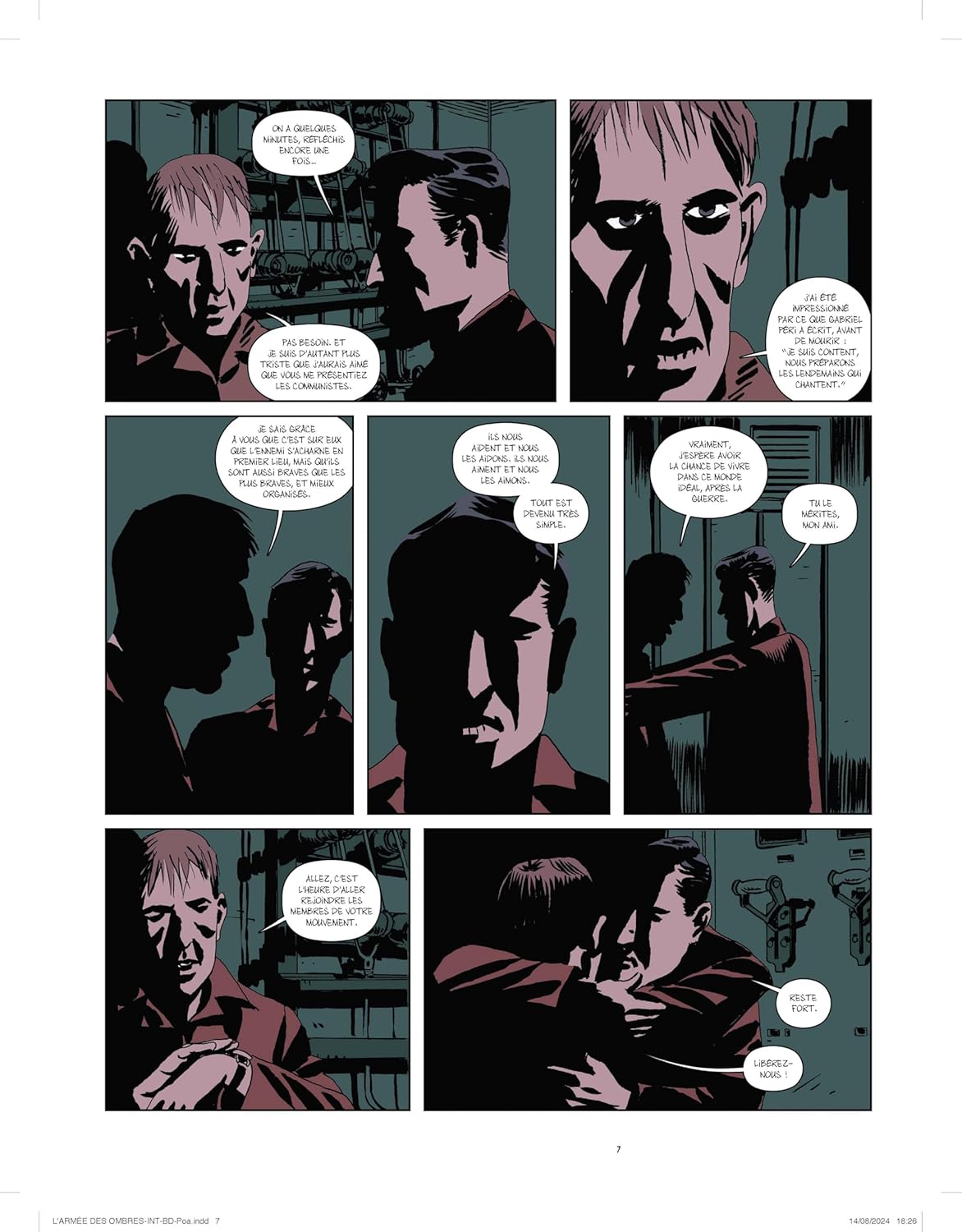 Je n'ai jamais lu le roman original, pot-pourri de témoignages de résistants recueilli par Joseph Kessel, mais j'ai vu l'excellent film de Jean-Pierre Melville qui est mille fois mieux que son adaptation en BD. Je sais que c'est injuste de faire une comparaison entre la BD et le film vu que le film est un chef d'œuvre, mais même si je prends la BD comme une œuvre originale, cela reste pas terrible. Je n'ai jamais aimé le dessin de Moynot que je trouve sans âme et c'est encore le cas ici. Les décors sont bien, mais je n'aime pas trop les personnages et les couleurs. La mise en scène n’est pas terrible. Je n'ai ressenti aucune tension lors de moments dramatiques et en fait je n'ai rien ressenti du tout durant ma lecture en dehors de l'ennuie. Mention spécial pour la dernière scène. Dans le film, c'est une des scènes qui m'a le plus marqué dans ma vie de cinéphile et je ressens toujours de la triste rien qu'en pensant à la scène. La même scène dans la BD donne un truc bâclé et limite les deux dernières cases m'ont presque donné envie de rigoler. Une adaptation franchement dispensable.