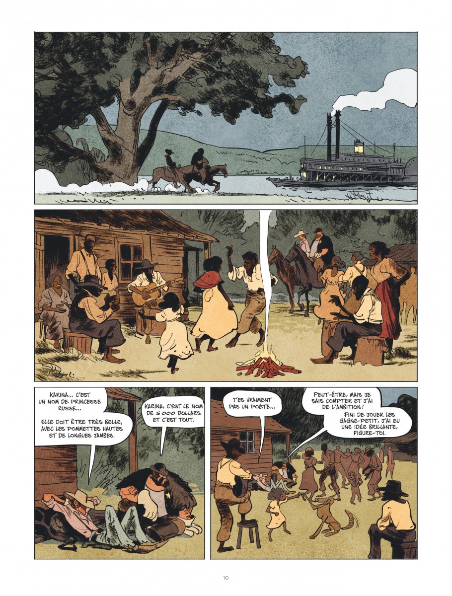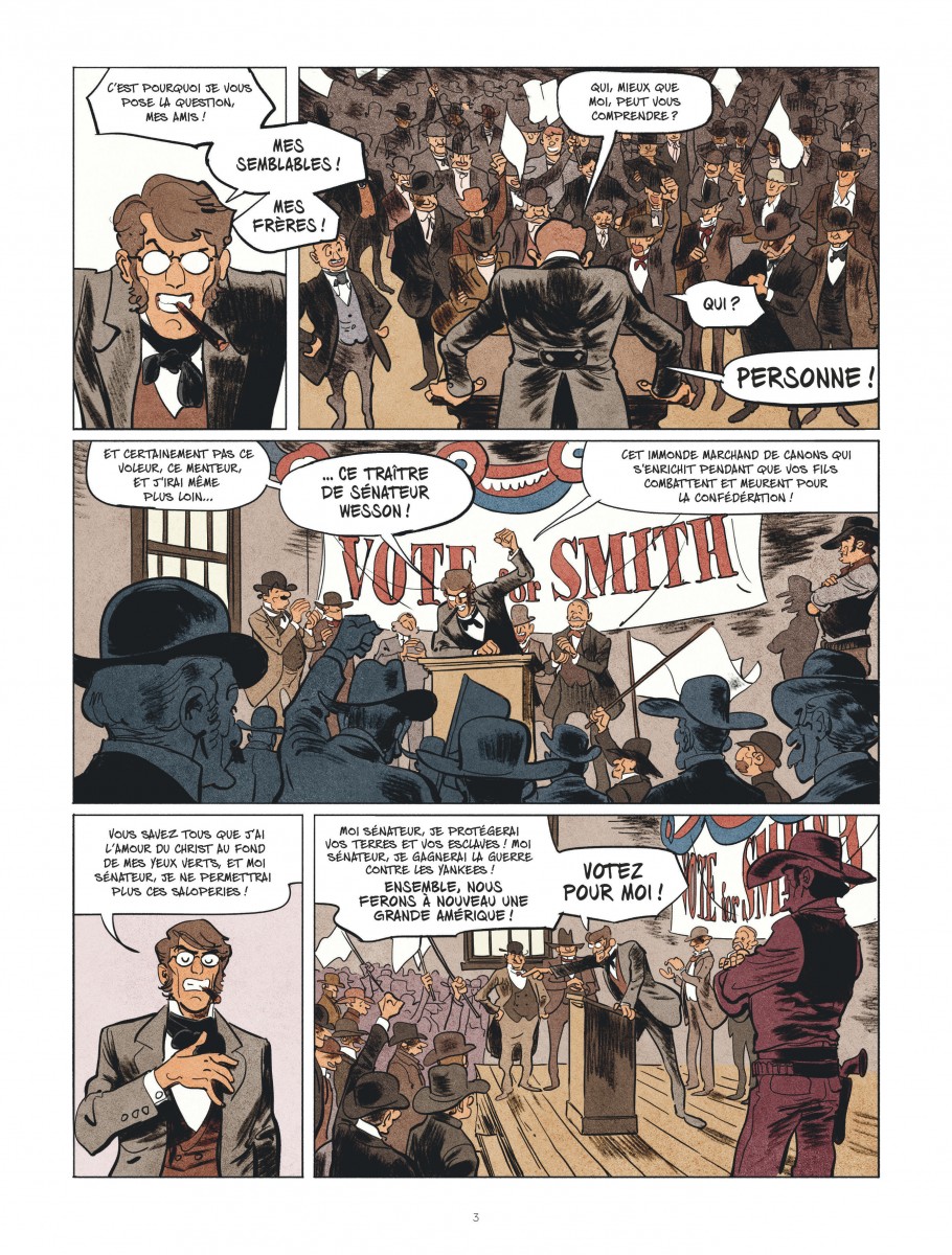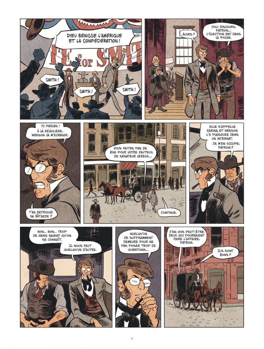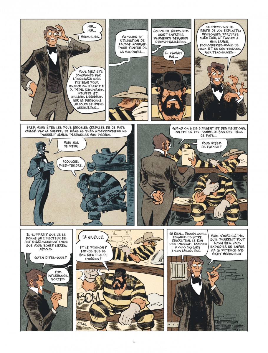 Vous ferai-je l’affront d’évoquer la cultissime série des « Trinita » comme référence principale à ce « On les appelle Junior & Senior » ?… Bien plus qu’un simple hommage, cette nouvelle série signée Robin Recht, au scénario cette fois, et Jean-Baptiste Hostache au dessin, est une véritable déclaration d’amour au duo mythique Bud Spencer – Terrence Hill : la castagne à coup de bourre-pif, les fayots, les engueulades à répétition entre les deux frangins, une intrigue enfantine, il y a là tous les éléments clés qui ont fait le succès des deux compères. Me concernant je ne garde pas un grand souvenir des Trinita. Plus spécifiquement sur la carrière du duo, j’ai en mémoire « Les Super-flics de Miami », « Pair et Impair », ou encore « Salut l’ami, adieu le trésor ». Mais bon, leur carrière respectif ou ensemble fût tellement riche… En tout cas ce Junior & Senior est truffé de références, même si je suis loin de les avoir toutes captées on les perçoit en seconde lecture. Par exemple il y a Eli Wallach qui fait une apparition et il a tendance à trop parler au lieu de tirer (si vous voyez ce que j’veux dire). Ou encore Mlle Bismarck dont s’amourache Junior, et dont on peut penser qu’elle fait référence à la femme de Terrence Hill, une américaine d’origine allemande. Les experts pourront s’amuser à essayer de tout repérer. Sinon, pour rentrer dans le vif du sujet, j’ai trouvé ça sympathique, à l’image de ce vieux duo de notre enfance. Je n’irai pas jusqu’à dire que c’est un incontournable et que ça vaut son pesant de cacahuète, mais on passe honnêtement un bon moment, ça se laisse lire, sans aucune surprise. Je me demande même si ce n’est pas une bd à mettre davantage entre les mains d’un enfant. Après tout, moi ça touche à mes souvenirs d’enfant, je n’ai revu aucun de leurs films depuis cette époque. Il y a comme un charme suranné là-dedans, qui n’est pas désagréable en soi, mais je ne ressent pas particulièrement l’envie de m’y replonger. Le dessin de Hostache est approprié, tout en rondeur, rigolo, avec des couleurs qui donne un aspect un peu vieilli évoquant nos Lucky Luke de jeunesse. Donc c’est cool, mission remplie pour lui aussi. Je ne sais pas si je serai du rendez-vous, mais je souhaite le meilleur pour les épisodes suivants et un franc-succès dans les ventes.