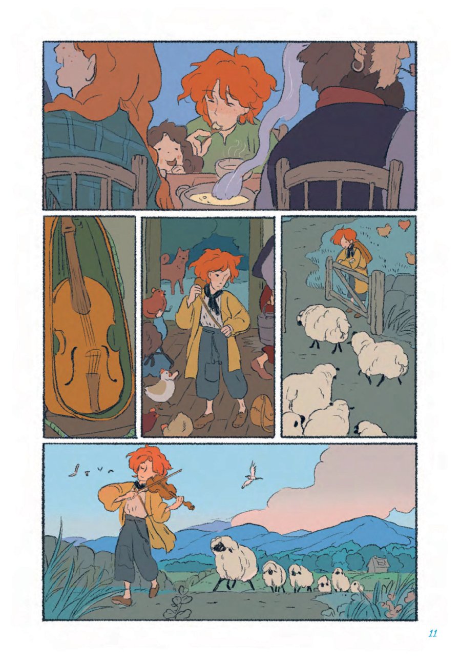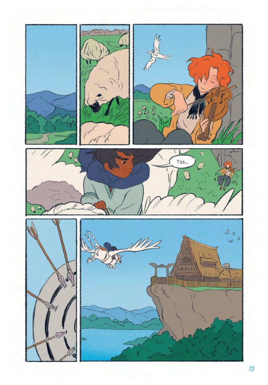 Bon, eh bien me voilà confortée dans mon appréciation de l'auteur-ice ! Pas que ses créations soient parfaites, pas que je sois complètement chamboulée à la fermeture de ses albums, mais j'avoue être touchée, sincèrement touchée, à chaque fin de lecture. Ce sont des récits simples mais touchants, au message doux et optimiste quant à l'avenir de la jeunesse. Ici, comme souvent avec K. O'Neill j'ai l'impression, il est question du rapport que l'on a avec les autres. Non seulement il est question de vie en communauté et de la peur de la place que l'on y prend/que l'on aimerait y prendre, mais il est également question d'amour propre et d'épanouissement, un rappel qu'il faut savoir s'aimer soi-même pour pouvoir s'épanouir en société. Le message de fin de Léone le résume bien : "Certaines personnes ne te verront jamais comme tu veux être vu, t'sais ? J'crois qu'il vaut mieux te plaire à toi-même d'abord, et ceux qui t'aiment le verront." Rowan et Léone, nos deux protagonistes, se cherchent, cherchent une place dans leur société. Rowan veut devenir ranger, un-e gardien-ne de la région chargé-e de protéger les population, mais cherche surtout à savoir qui iel est, à l'exprimer aux autres ; Léone est rêveur, timide, souhaite secrètement partager son monde par la musique mais craint le regard des autres. Par un coup du sort iels se rencontrent, se comprennent sans même le réaliser au début et vont se pousser l'un-e et l'autre à s'ouvrir au monde et s'affirmer un peu plus. Rowan, même lorsqu'iel critique l'apparente fainéantise de Léone, ne se moque jamais de lui, et Léone, même lorsqu'il semble désinvolte et tête en l'air, observe et supporte émotionnellement Rowan, l'aidant à enfin à s'affirmer quant à son identité. Le dessin de Kay O'Neill est, comme toujours, très beau. En tout cas il me plait. Qu'il s'agisse de son trait ou de ses couleurs, de ses récits positifs ou de ses personnages aux bouilles expressives, tout me parait si doux. J'ai envie de me blottir sous la couette avec un chocolat chaud. Nul doute que le travail graphique joue beaucoup dans mon appréciation de ses récits, sans doute serais-je moins dithyrambique sans cela. Mais bon, la bande-dessinée est également un art graphique et la forme joue aussi un rôle important dans la qualité d'une œuvre ! Ça me fait presque bizarre de donner un coup de cœur à cet album, après tout La Gardienne des Papillons lu hier soir à peine avait déjà su m'attendrir suffisament pour le valoir et je n'ai pas envie de diminuer la valeur de cette unité de mesure en l'utilisant à tout va, mais je me dois d'être honnête avec mon ressenti : les deux albums, bien que différents, ont su tous deux me toucher par leur message simple sur l'acceptation de soi et l'épanouissement personnel et sur le travail graphique mignon comme tout de l'auteur-ice. Je suis peut être trop dithyrambique, trop positive lorsqu'il est question de ce genre de petits récits rêveurs et positifs comparée à d'autres aviseur-euse-s du site, mais voilà : je suis un cœur d'artichaut. Et puis les coup de cœur n'ont jamais eu à être objectifs ! Coup de cœur. (Note réelle 3,5)