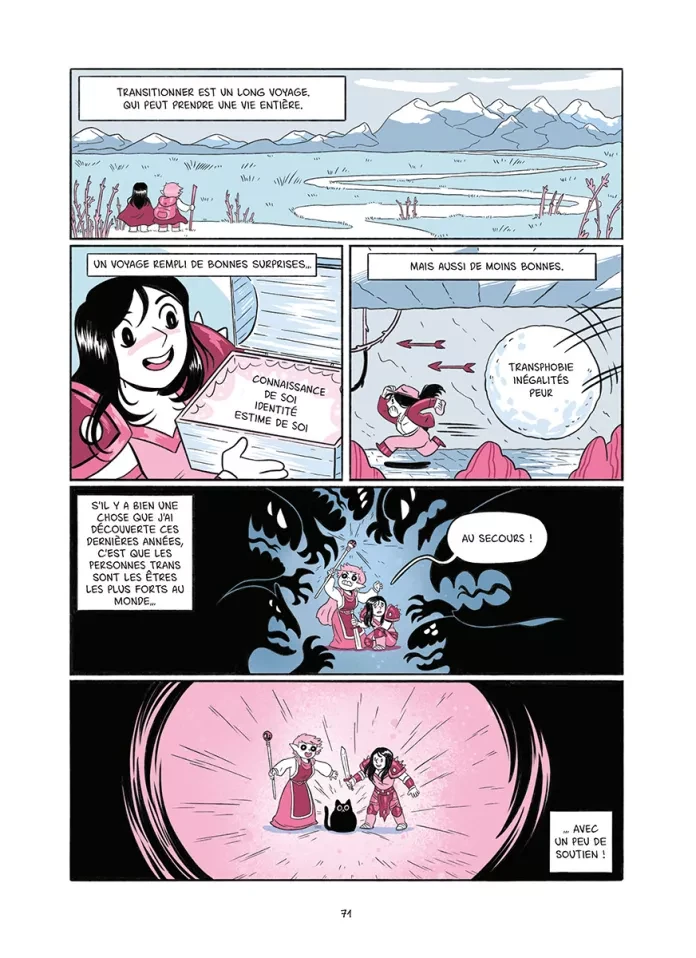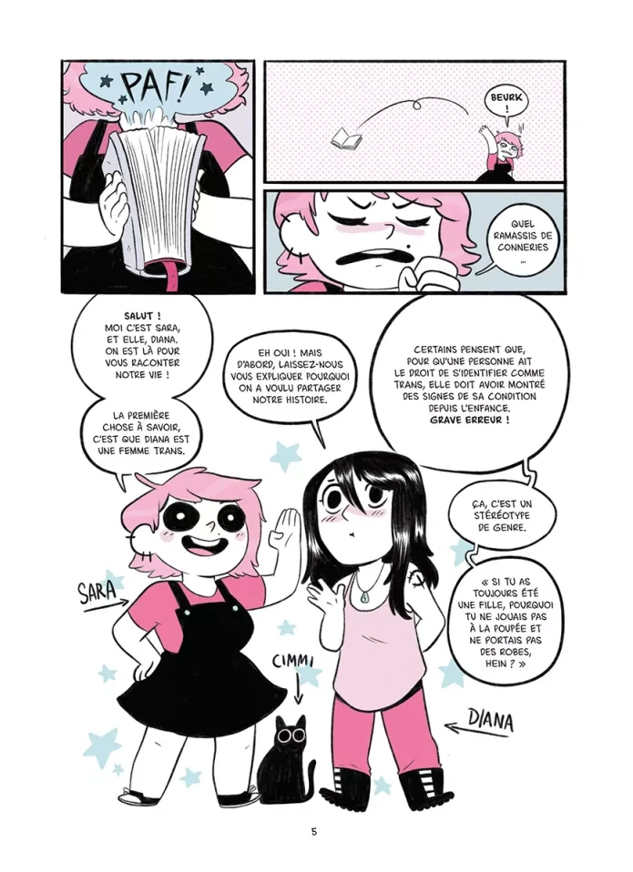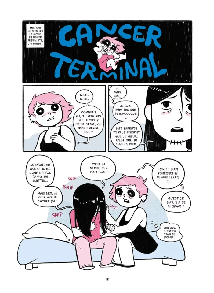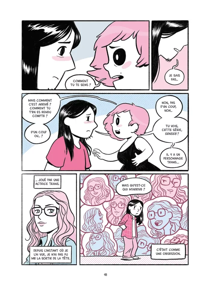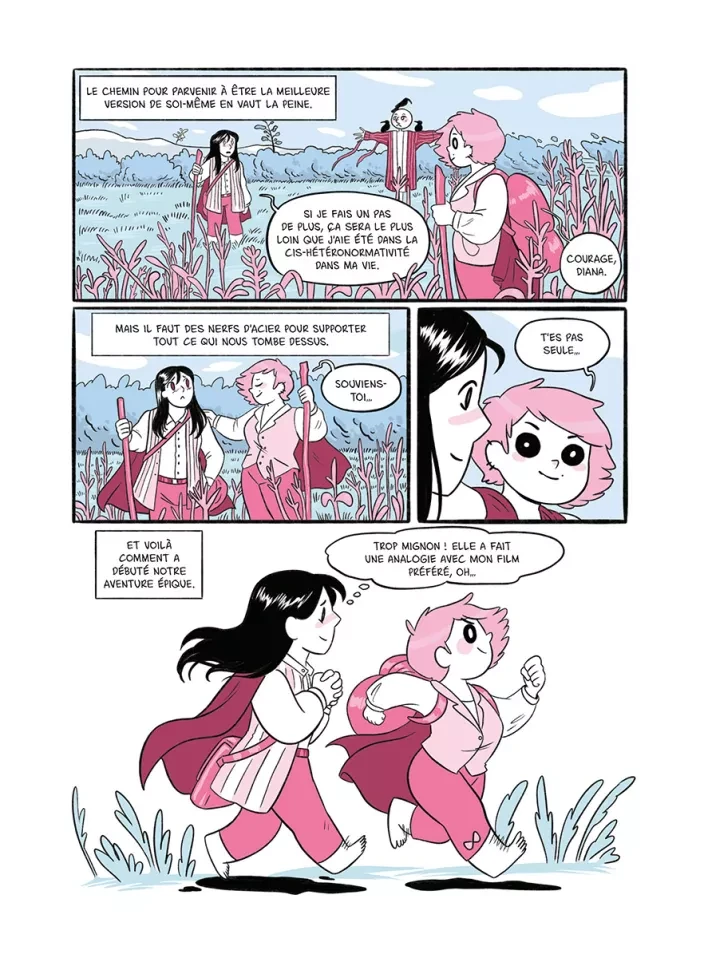 Tout est dans le titre : il est question de petites amies. Plus précisément, il est question du parcours de deux petites-amies, de comment l'une a réalisé qu'elle était femme et que l'autre a réalisé qu'elle aimait les femmes. C'est le témoignage d'un couple sur le coming out, l'acceptation de soi, l'évolution de la vision que l'on a de soi, de nos rapports aux autres aussi lorsque l'on apparait officiellement comme "queer". L'album est bon, très bon même. Je suis agréablement surprise car, d'habitude, ce genre d'autobiographie parvient à me toucher mais jamais sans plus ; et là, surprise, ça a fait mouche. Peut-être est-ce le discours simple mais réfléchi, parvenant à présenter toute la nuance et la complexité de son sujet tout en restant très personnel, peut-être aussi est-ce le rappel du pourquoi ce genre de récit touche certaines personnes et reste encore nécessaire pour faire cesser les préjugés et les comportements nocifs, ou bien peut-être même est-ce les quelques petits passages comiques qui m'ont fait sourire (mention spéciale pour l'image du duel de cowboy où chacune se doute de ce que l'autre cache mais aucune n'ose faire le premier pas), mais quoi qu'il en soit j'ai aimé. Qu'il s'agisse des passages difficiles ou des moments épanouissants, tout nous est raconté pour humaniser au maximum, pour partager au mieux l'expérience de l'autrice et de sa petite-amie. L'évolution de la pensée, de la vision que l'on a du monde, que le monde nous renvoie aussi, lorsque l'on sort de ce que la société juge "normal", "acceptable" même, chacune de leurs expériences touche et est suffisamment bien expliquée pour faire prendre conscience à certaines personnes n'y connaissant rien ce que cela fait de vivre dans la peau d'une personne queer, particulièrement lorsque l'on est une personne transgenre (binaire ou non). Je ne suis pas particulièrement fan du dessin de Sara Soler (que je découvre ici), il n'est pas mauvais, appuie très bien les moments comiques, mais n'est tout simplement pas mon style de prédilection. Bon, les couleurs pastels (bleu, rose et blanc pour évoquer le drapeau transgenre) restent suffisamment douces pour quand-même m'être agréables - j'aime le pastel, que voulez-vous ? Après, le dessin de couverture et le timing comique de l'autrice sont plus à mon goût, donc je suivrais probablement les prochaines créations (y compris celles de sa petite-amie qui, si j'ai bien compris, travaille aussi dans la bande-dessinée). Bref, un très bon témoignage, alliant joliment expérience personnelle et présentation détaillée (bien que simplifiée) de son sujet, qui rappelle aussi que cette expérience n'est qu'une parmi tant d'autres, que si tous les individus sont uniques leurs histoires le sont tout autant, donc moi j'ai bien envie de me montrer plus généreuse qu'à l'accoutumée face à ce genre de création et monter jusqu'à quatre étoiles. (Note réelle 3,5)