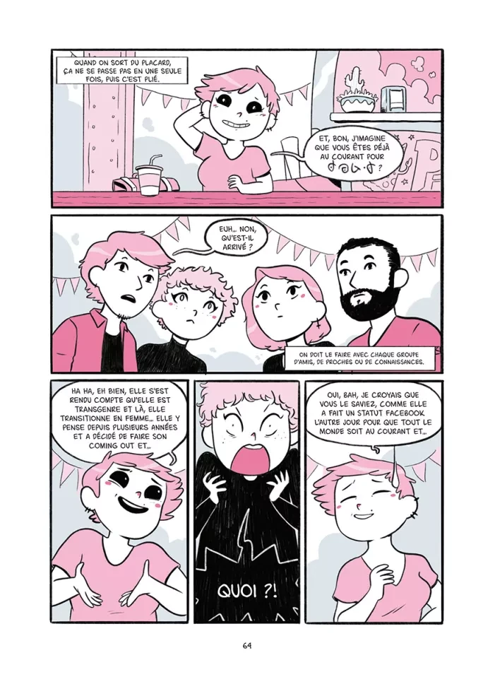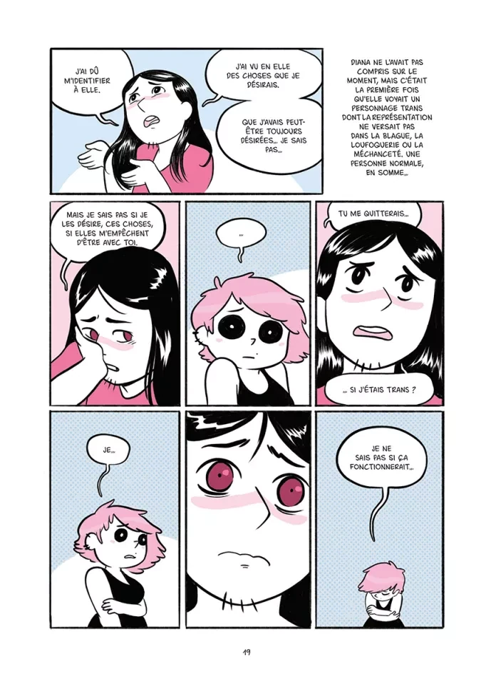 Qu’est-ce qui change quand notre vie fait un virage à 180° ? Tout et… en même temps, rien. La vie continue. Pour Sara, tout semble s’effondrer quand l’amour de sa vie lui annonce que le genre qui lui a été attribué à la naissance ne correspond pas à son identité, qu’elle est et qu’elle se sent femme depuis toujours. Faut-il se séparer ? Faut-il continuer ? Si oui, Sara devient donc lesbienne ? Et que dire à la famille ? Aux amis ? Les questions se bousculent, mais après les premières craintes que ce tournant soudain ne mette fin à leur relation, Sara et Diana se rendent compte que leur amour est plus fort que les normes imposées par la société, et que rien n’a changé entre elles. Désormais, elles vont, l’une comme l’autre, devoir sortir du placard et affronter le regard des autres