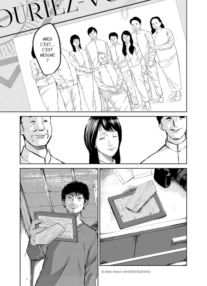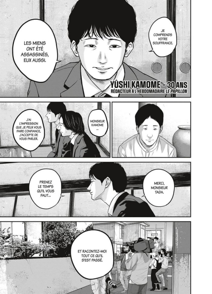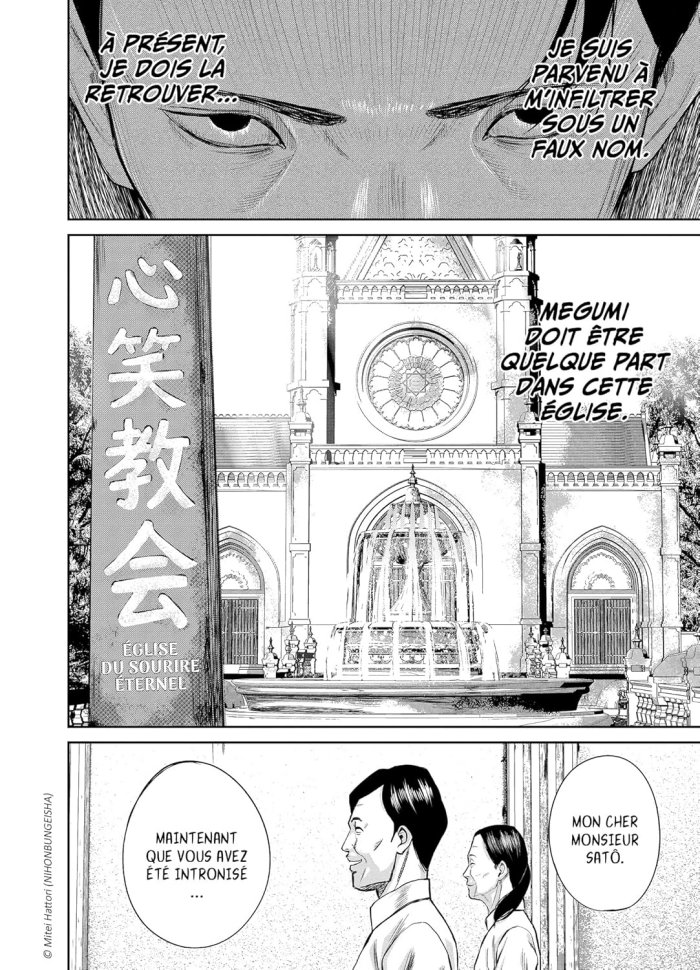 Un manga thriller qui parle d'un des problèmes du Japon : les sectes. Un journaliste découvre par hasard l'existence d'une secte étrange dont les adeptes n'ont aucun problème pour tuer. Il y a un côté horreur vu que les membres de la secte abordent un sourire très glauque et c'est pas très rassurant lorsqu'ils rient ! C'est un peu dur de noter la série pour le moment. J'ai lu les trois premiers tomes et une grande partie de ce que j'ai lu est surtout une longue introduction qui met en place les différents éléments du scénario. Un autre problème est que si pour l'instant le scénario est efficace, il fait aussi déjà vu pour quiconque a déjà lu ce genre de thriller : le journaliste qui découvre sans le vouloir quelque chose d'étrange et enquête, le collègue qui lui dit de ne pas le faire, le héros qui ne l'écoute pas et finit par voir sa vie intime ruinée parce qu'il s'attaque à une organisation plus puissante que lui... Il y a rien de nouveau. Il manque aussi quelque chose pour que le récit soit palpitant à lire, j'avoue que je suis tout de même un peu indifférent de voir si le héros va réussir ou non à combattre cette secte. Le dessin est pas trop mal, c'est du réalisme comme c'est la norme pour ce type de manga.