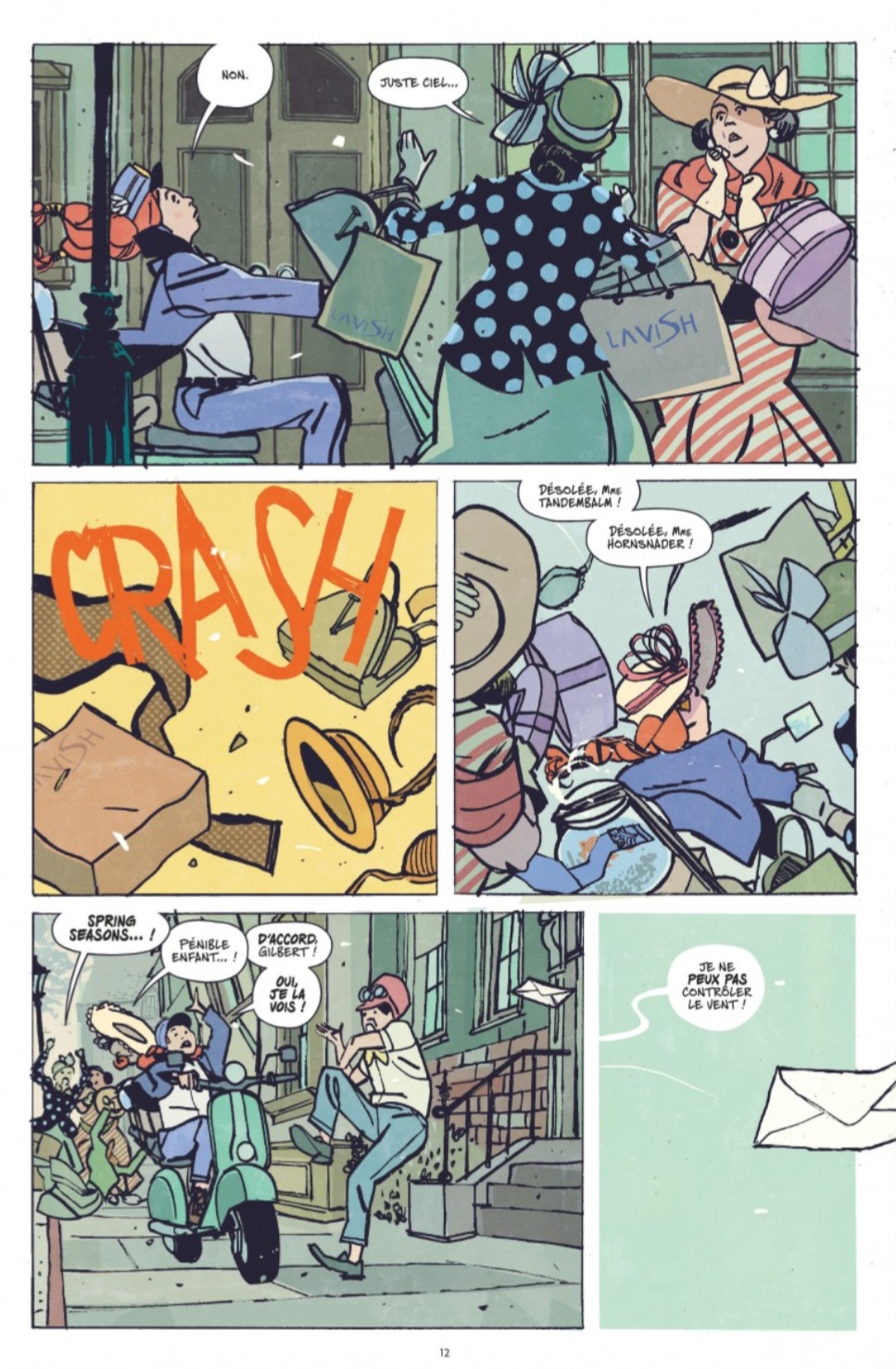 - Étrange BD ! - Tu as dit Étrange BD ? - Oui oui, j'ai dit : Étrange BD ! Je tourne autour de ce comics depuis sa sortie en librairie, sa couverture avait tout de suite attiré mon œil de lynx, mais son feuilletage rapide avait refroidi mes ardeurs. Je me suis laissé enfin tenter, bien aidé par les bons retours lus ci et là. Et qu'est-ce que j'ai bien fait ! Rick Remender nous propose un univers proche du notre, il situe le récit en 1924 dans la petite ville de New Gaulia. Mais avant de faire connaissance avec les sœurs Seasons, Remender nous balance en pleine face trois planches sur la ville Le Néo-Caire en introduction, elle est en proie à un phénomène déroutant. En effet, celle-ci n'a plus communiqué avec le monde extérieur depuis plus de 48 heures. On y voit les roulottes d'un cirque en train de plier bagages. Ensuite changement de tonalité avec Spring, la benjamine des sœurs Seasons, elle poursuit tant bien que mal une lettre qui ne fait que lui échapper (elle est factrice) avec l'aide de Gilbert, son poisson rouge. Et après ? Le récit va prendre une drôle de tournure. D'une histoire gentillette, on va glisser doucement, mais sûrement, sur quelque chose de plus sombre avec le cirque magique et la légende du roi vagabond. Une narration maîtrisée qui suggère plus qu'elle ne dévoile pour maintenir le lecteur sur le qui-vive. L'intrigue est dense et elle glisse vers du fantastique tout en mettant en lumière les liens familiaux distendus de la famille Seasons. Des secrets à découvrir ? Il me faut quand même vous toucher quelques mots sur les sœurs Seasons. Leurs parents ont disparu depuis une dizaine d'année. Elles sont quatre et se nomment Spring, Summer, Autumn et Winter. Les quatre saisons sus nommées et l'image que renvoie le miroir pour leur présentation (première image de la galerie) nous dévoilent leur personnalité à chacune. La symbolique du miroir... Je ne vais pas aller jusqu'à dire que le dessin est magnifique, par contre il a un grain indéniable. De Paul Azaceta, je ne connaissais que son travail sur Punisher Noir, et là, on n'est pas dans le même délire ! Azaceta nous propose un style qui pourrait à première vue paraître brouillon et bâclé. Mais il n'en est rien, son trait épais et son rendu presque cartoonesque donnent ce ton si décalé au récit. Les aplats de couleurs de Matheus Lopes (coloriste à suivre) participent pleinement à l'étrange atmosphère de ce comics. Je valide tout ! Un premier tome intrigant qui augure le meilleur.