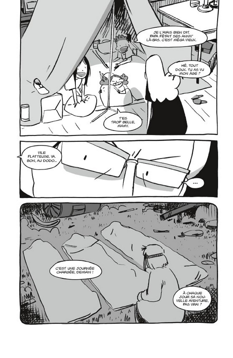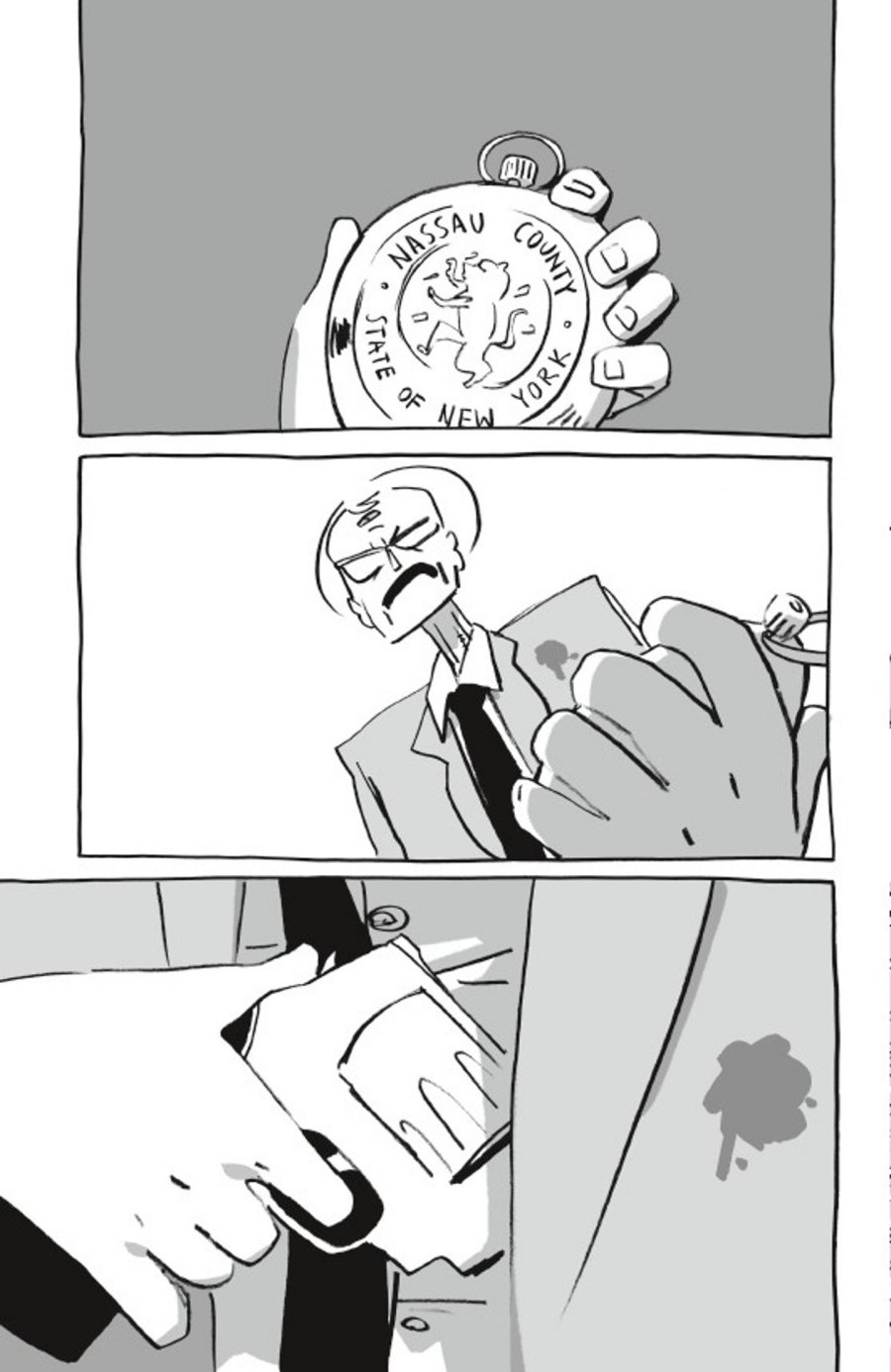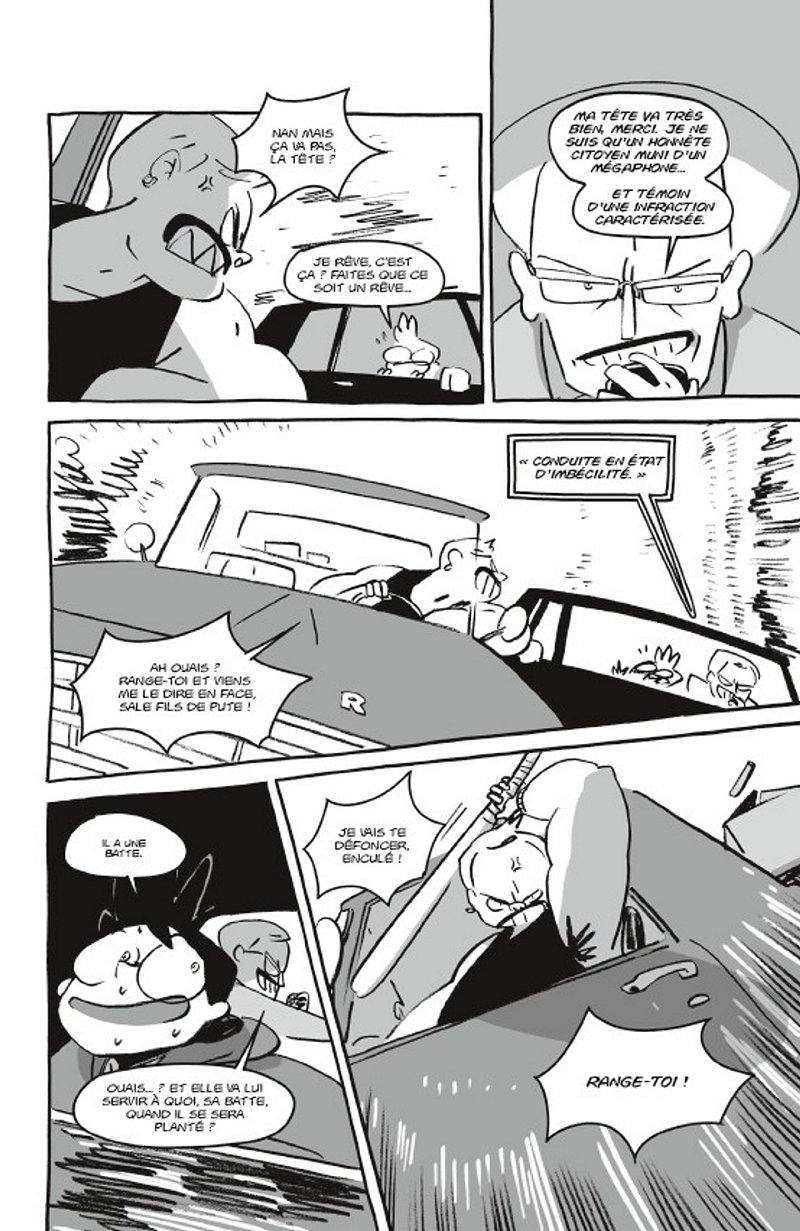 L’album se laisse lire, il y a un certain rythme – donné d’ailleurs parfois plus par les dialogues que par l’intrigue elle-même – mais il m’a un peu laissé sur ma faim. L’histoire mélange plusieurs genres. C’est un polar (le personnage principal est un inspecteur sur le point de partir en retraite), mais l’essentiel du récit tourne quand même autour des relations qu’il entretient avec son fils (et, accessoirement avec les autres membres de sa famille, voire ses collègues). En effet, notre vieux flic est souvent difficile à supporter, et n’hésite pas à employer un langage assez vert – y compris en présence de ses petits-enfants – tandis que son fils, qui est embarqué dans sa dernière enquête, se révèle lui aussi une personnalité manquant de sérénité. L’histoire se laisse lire donc, certains passages sont savoureux – essentiellement du fait des échanges verbaux assez secs. Mais j’ai vraiment eu beaucoup de mal avec le dessin. Inégal et pas toujours très lisible, c’est un style brut de décoffrage, minimaliste – et pas trop mon truc pour tout dire. Note réelle 2,5/5.