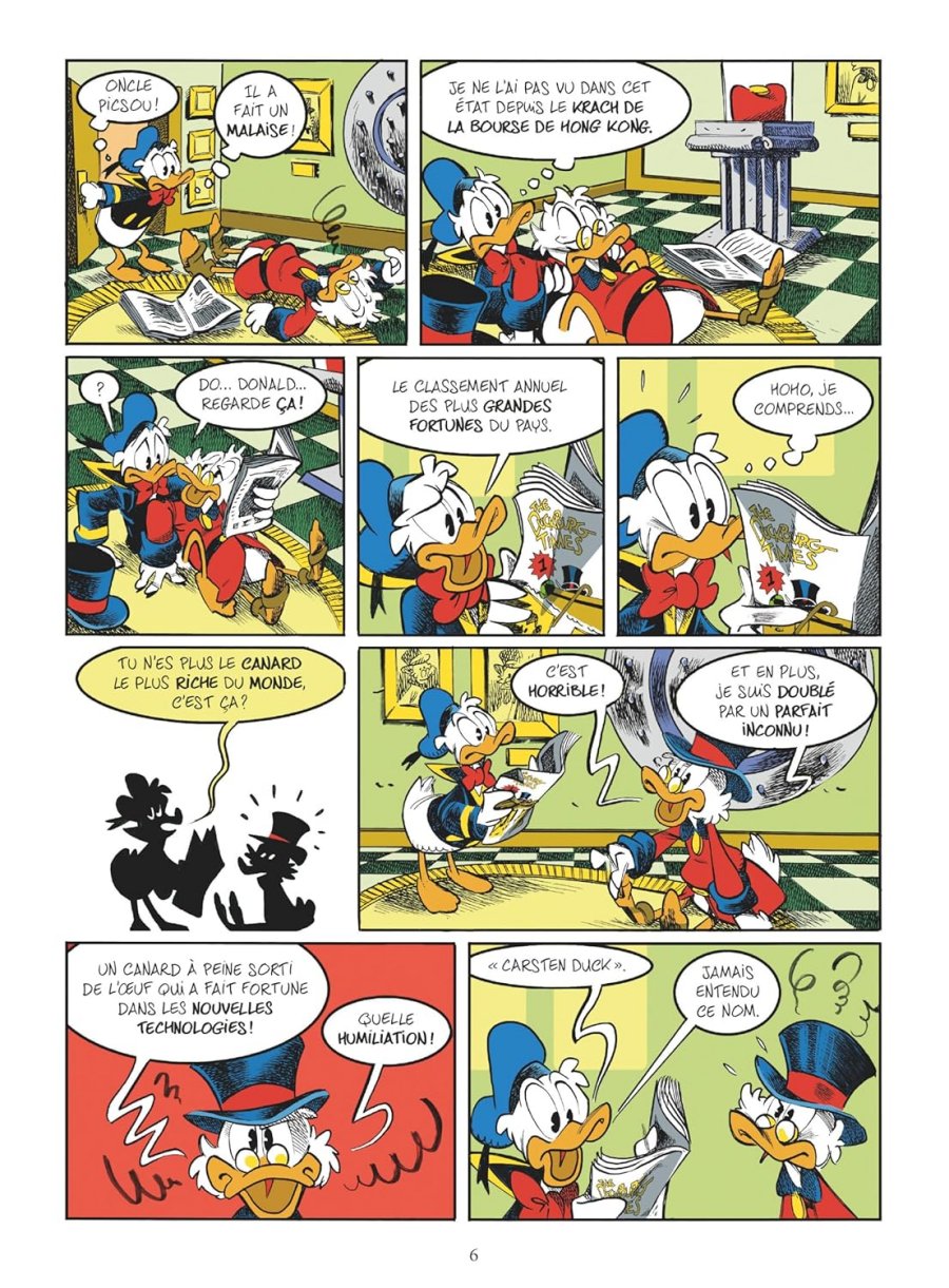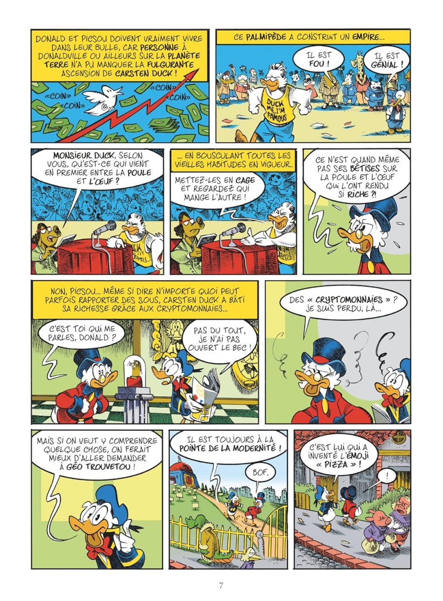 Cryptomonnaies, nouvelles technologies, réseaux sociaux : assis sur son tas d’or, Balthazar Picsou semble dépassé par son époque… Mais quand il apprend que le titre de « canard le plus riche du monde » lui est volé par le mystérieux Carsten, nouvelle fortune de la tech, son sang de canard ne fait qu’un tour.
