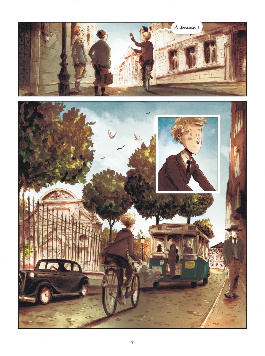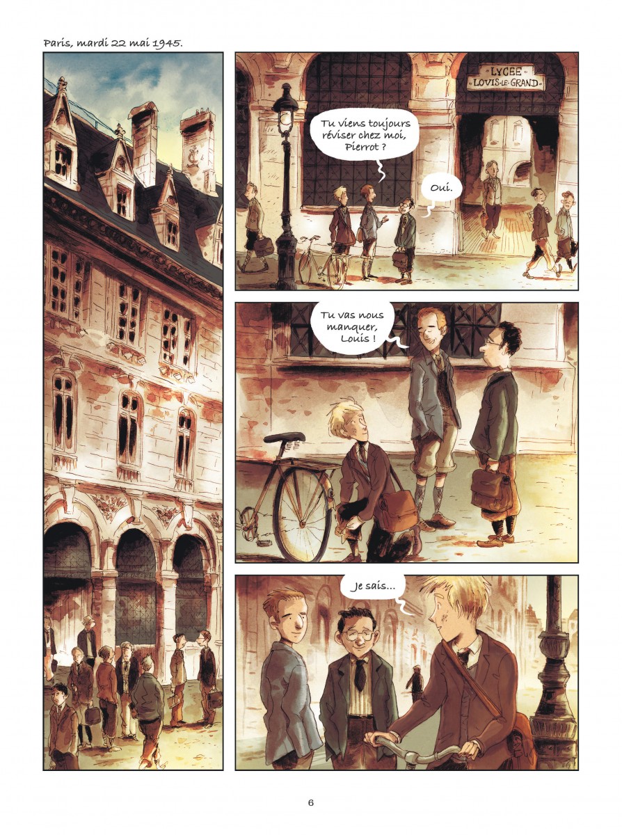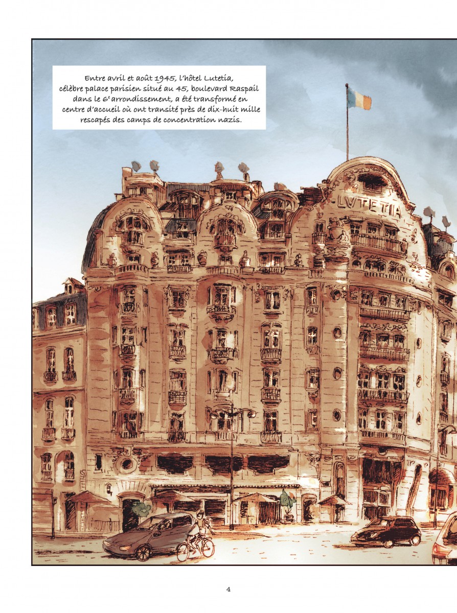 Encore un livre sur la Shoah pourrait-on penser. L'actualité prouve malheureusement qu'il n'est pas superflu de rappeler sans cesse les horreurs provoquées par des pensées et des discours racistes. La série est d'autant plus légitime qu'elle explore une situation peu visitée : le retour des déportés à l'hôtel Lutétia de Paris et leur réadaptation à la vie normale dans une France peu enthousiasme à approfondir ce sujet. Le/la lecteur-rice se retrouve à l'hôtel Lutétia du très chic sixième arrondissement de Paris reconverti comme centre d'accueil et d'orientation des déportés libérés des divers camps nazis. Le scénario ne s'aventure pas sauf une exception dans des flashback douloureux. Au contraire il s'agit bien de se réapproprier l'avenir avec toute la charge mentale émotionnelle voire de culpabilité inhérente aux survivants du génocide orchestré par les nazis avec la collaboration plus ou moins active des états envahis. La narration reste soft et délicate, tout en nuance devant la situation de certains comme le père de Louis. C'est donc un récit qui s'adresse à un large public. Ce sentiment est renforcé par la présence de Dawid aux manettes graphiques. Cet auteur est un habitué des excellentes éditions de la Gouttière qui proposent de très bons titres Jeunesse. Dawid a déjà réalisé plusieurs albums muets (Passe-passe,Dessus Dessous, Pas de deux) où son graphisme très poétique porte merveilleusement bien la sensibilité de la narration dans des thématiques émotionnellement fortes. Sa mise en couleur est moins brillante que pour ses albums jeunesses mais correspond aussi mieux à l'ambiance de cette période grise d'après guerre. Une belle lecture pour tous qui reste d'actualité.