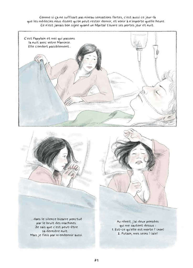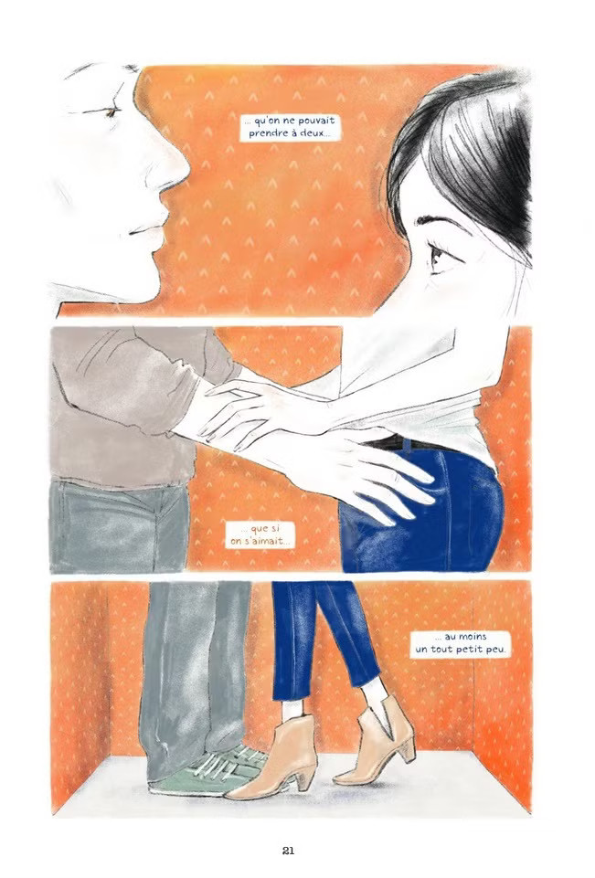 Moi qui avait été plus qu'agréablement surpris par le premier album qu'avaient réalisé nos deux mêmes autrices, j'avoue m'être passablement ennuyé avec leur deuxième production. C'est tout d'abord les émotions qu'elles avaient admirablement réussi à faire passer dans Les Fleurs aussi ont une saison qui m'avait touché. Cette façon d'amener, de parler et de traverser 3 deuils successifs m'avait impressionné. Que ce soit par la narration ou le dessin, tout sonnait juste et touchait au coeur. Cette fois, ce récit sur les relations amoureuses et la parentalité de ce couple, Camille et Sébastien, m'a paru bien fade et quelconque en comparaison. Même le dessin de Cécile Poree que j'avais énormément apprécié, m'est apparu moins efficace. Bref, on est loin de leur premier album qui sonnait si juste et j'ai pris sur moi pour finir ma lecture.