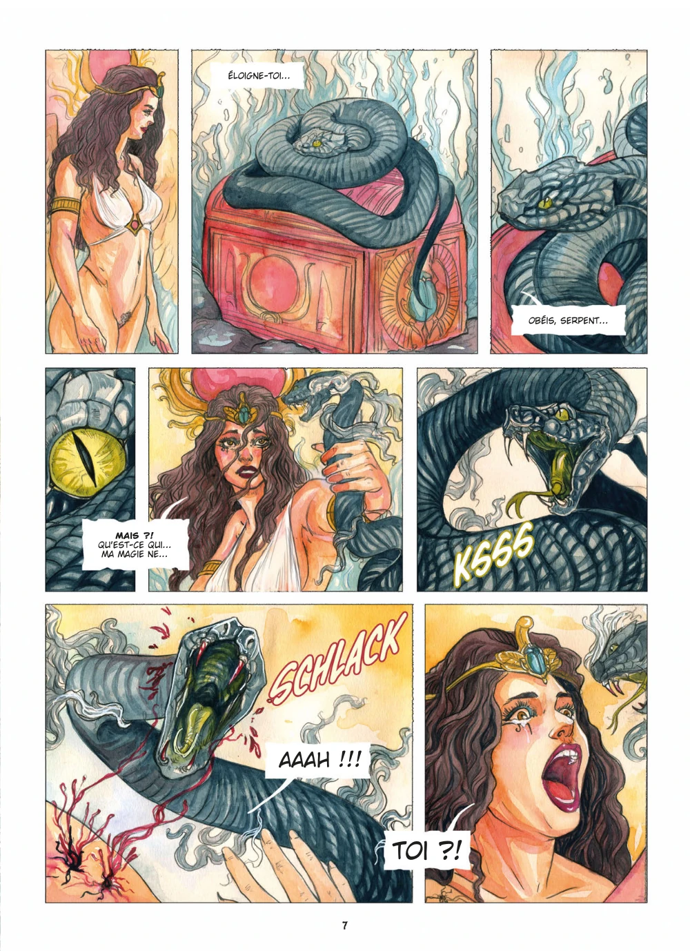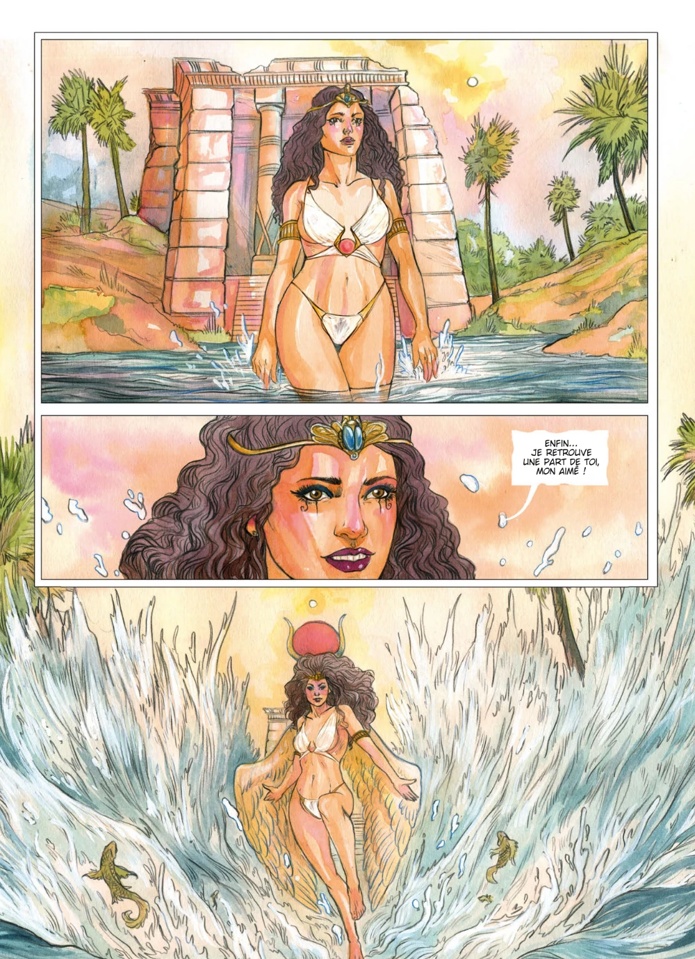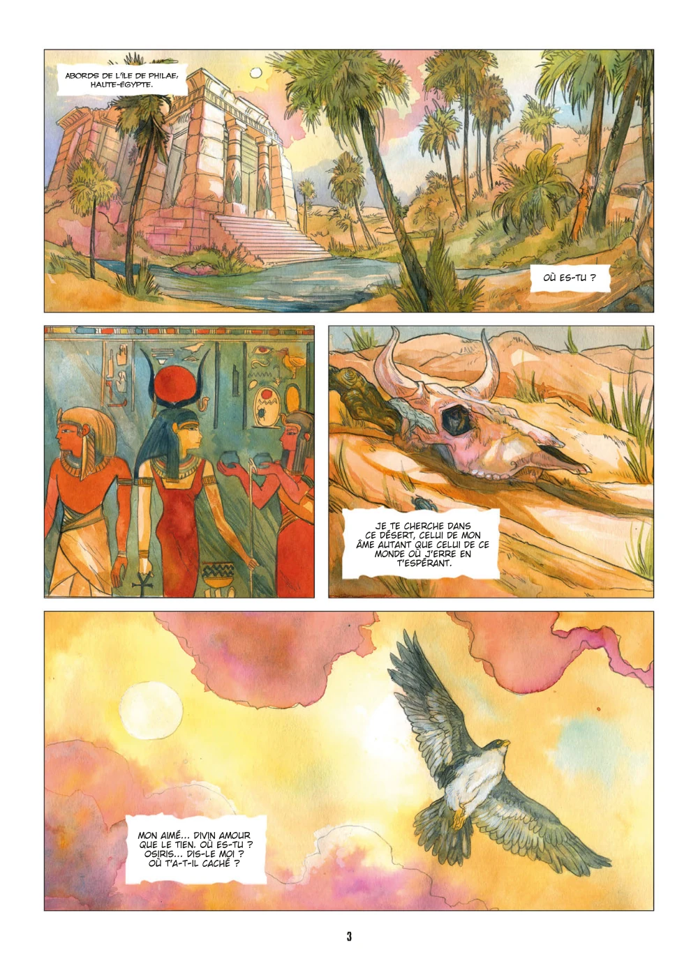 Percer ses secrets au cœur d’un récit en bande dessinée fait de voyages et d’aventures, c’est plonger au cœur de l’imaginaire de l’Égypte antique et de cet Orient énigmatique empli de sensualité. Ce diptyque dévoile les mystères de la plus populaire des déesses du panthéon égyptien.