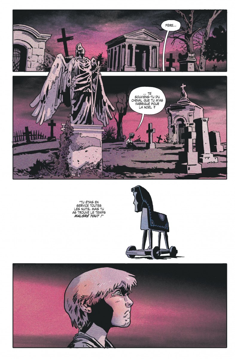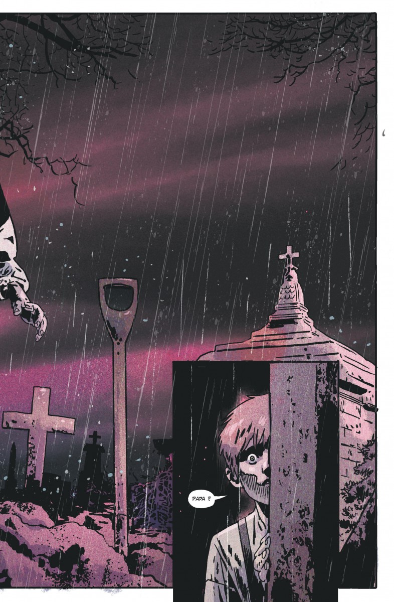 Je pense que Frankenstein est peut-être l'œuvre la plus adaptée en bande dessinée. Il faut dire que la puissance d'évocation du roman de Mary Shelley y est particulièrement propice. Cette nouvelle version est celle de Michael Walsh, et se trouve être en fait l'adaptation de l'adaptation cinématographique de 1931, réalisée par James Whale. Ce ne fut pas la première adaptation, mais la première véritablement marquante, avec la figure de Boris Karloff, dont le visage massif, buriné, et planté de clous ou de vis est rentré dans l'inconscient collectif lorsqu'on évoque la créature de Frankenstein. Car oui, une bonne fois pour toutes, Frankenstein n'est pas le nom de cette créature, qui n'en a d'ailleurs pas, mais bel et bien celui de son créateur, ce savant un peu fou qui redonne la vie grâce à l'électricité. Ici pas de final sur la banquise, le savant n'est plus Viktor, mais Henry Frankenstein, et celui-ci rencontre son destin au pied d'un moulin à vent... L'adaptation de Michael Walsh, auteur canadien, suit d'assez près le film de 1931, mais il y adjoint, en particulier, la présence de Paul, le jeune fils de l'une des composantes de la créature, qui joue un peu le rôle de la petite fille dans le jeu des Loups-Garous de Thiercelieux : un personnage qui, du fait de sa petite taille, se faufile partout, observe et comprend pas mal de choses. Il intervient un peu dans l'histoire, sans toutefois changer notablement la trame du récit. C'est un ajout intéressant, assez crédible en soi, et cela ajoute un peu de moteur dans l'action qui est tout de même assez rapide. L'album comporte 128 pages, mais seulement une centaine pour l'histoire proprement dite. Celle-ci est complétée par quelques croquis et couvertures réalisés par Walsh, mais aussi et surtout une belle postface, signée par Arnold Petit, traducteur de l'album, qui est aussi un youtubeur spécialisé dans l'horreur, et retrace en deux-trois pages la trajectoire spéciale de l'œuvre de Shelley, avec surtout un focus sur le film de Whale, ce qui est normal. Walsh propose quant à lui une adaptation assez puissante, dotant cette histoire de son dessin fort évocateur, jouant sur les ombres avec malice (aidé de sa coloriste Joni-Marie Griffin). Bref, une bien belle version !